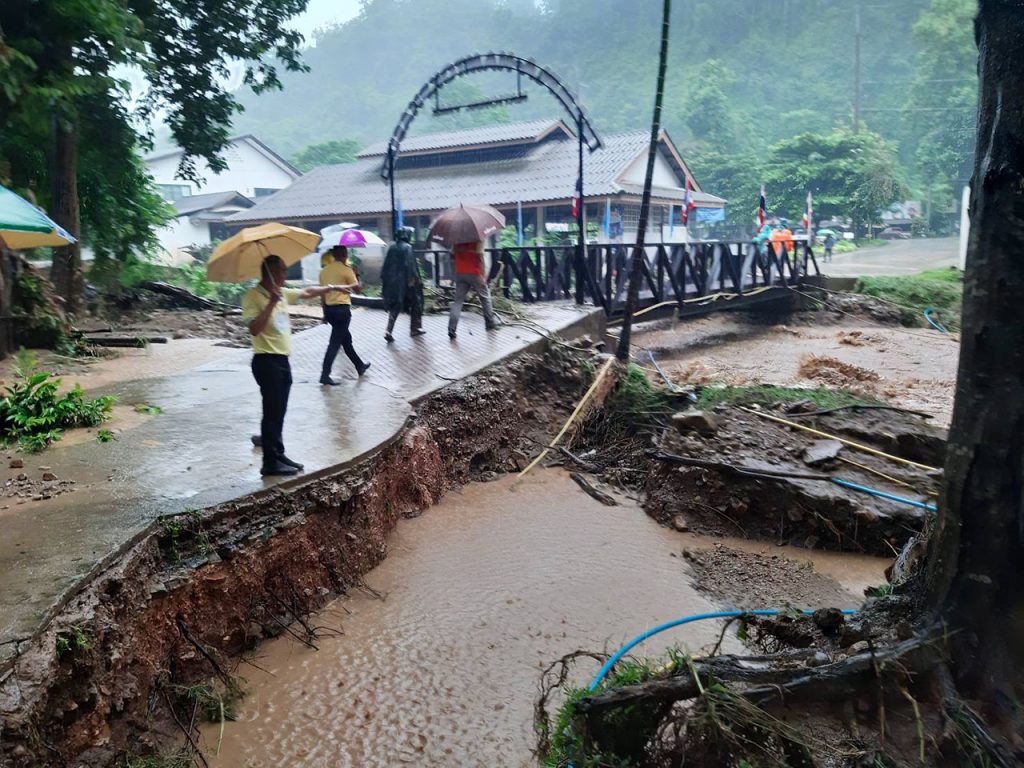 ขณะที่ เจ้าหน้าที่ป่าไม้ได้รายงานว่า ที่บริเวณจุดสกัดสหัสบุญญาวิวัฒน์ 2 (ห้วยซลอบ) ปริมาณในลำห้วยซลอบ มีปริมาณมาก ซึ่งจะไหลลงไปบ้านห้วยผา ทำให้ทางเข้าหมู่บ้านยังไม่สามารถสัญจร ได้ จึงให้เจ้าหน้าที่หน่วย เข้าช่วยเหลือราษฎร