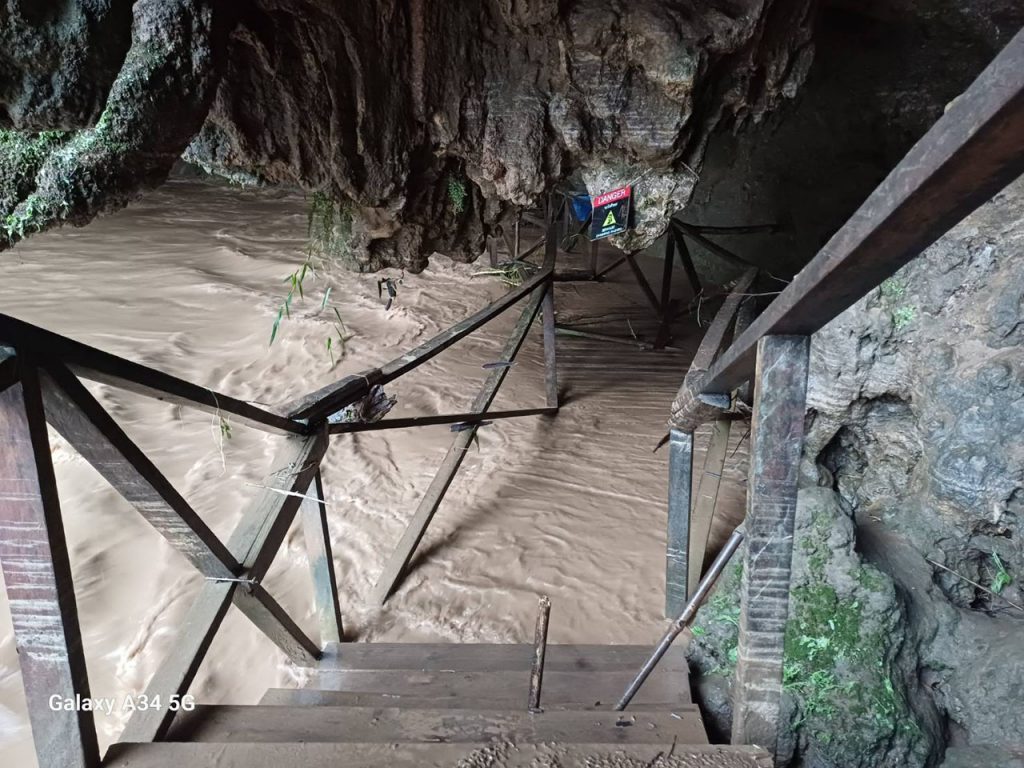ส่วนที่อุทยานถ้ำปลา น้ำตกผาเสื่อ อำเภอเมือง แม่ฮ่องสอน ก็ได้เกิดฝนตกหนักเช่นกัน ลำน้ำห้วยผาได้เอ่อล้นและไหลหลากเข้าท่วมแหล่งท่องเที่ยวถ้ำปลา ขณะนี้กระแสน้ำยังไหลเชี่ยว เพิ่มขึ้น เจ้าหน้าที่ทั้งหมดอยู่ในบริเวณชั้นสองของสำนักงาน และปลอดภัยทุกท่าน ปัจจุบันอยู่ระหว่างการติดตามสถานการณ์ อย่างใกล้ชิด