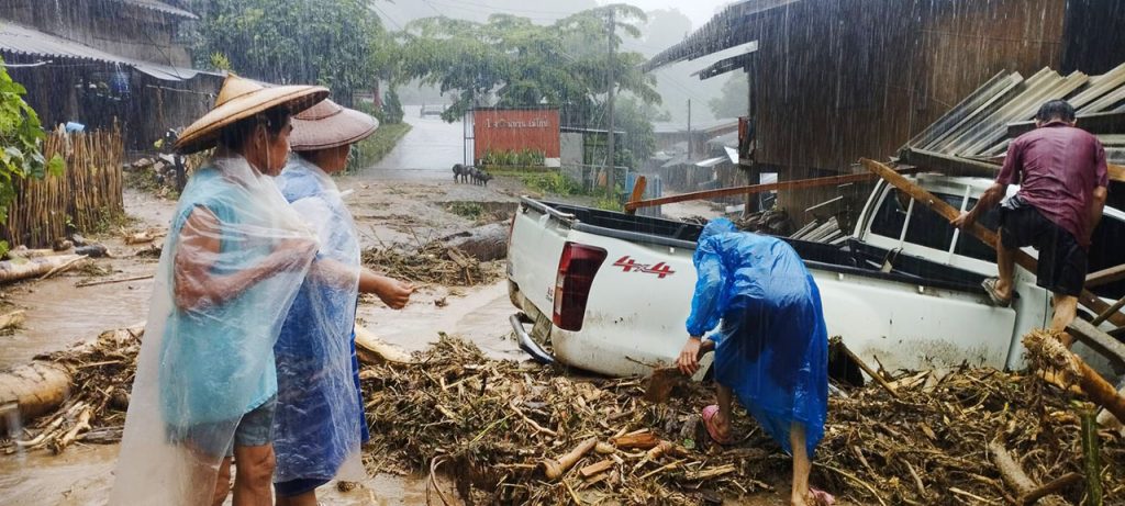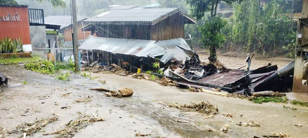 ด่วนน้ำป่า ถล่มขุนยวม พัดบ้านเรือนราษฏรหลายหลัง อยู่ระหว่างการตรวจสอบ เตือนสายใต้เฝ้าระวังน้ำยวมเพิ่มระดับต่อเนื่อง
