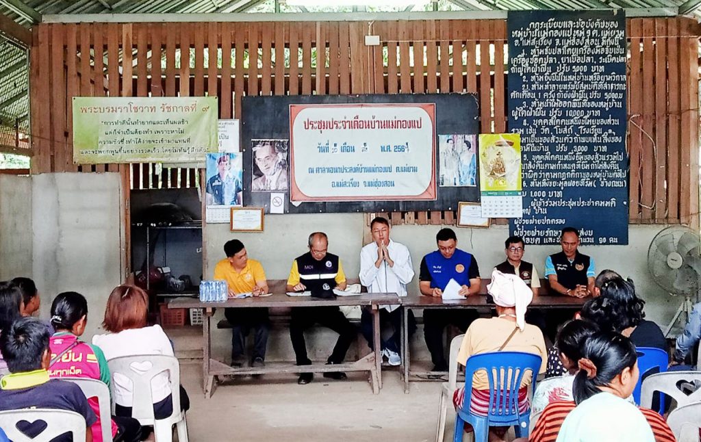 อำเภอแม่สะเรียง ร่วมประชุมเพื่อแลกเปลี่ยน หารือแนวทางการอยู่ร่วมกันในชุมชนระหว่างโรงงานแปรรูปบุกและประชาชนบ้านแม่กองแป หมู่ที่ 9 ตำบลแม่ยวม อำเภอแม่สะเรียง จังหวัดแม่ฮ่องสอน โดยสำนักงานอุตสาหกรรมจังหวัดแม่ฮ่องสอน