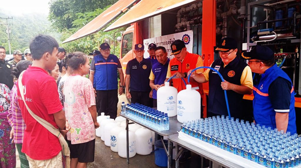 พร้อมกันนี้ทาง ศูนย์บรรเทาสาธารณภัยหน่วยพัฒนาการเคลื่อนที่ 36 ( ศบภ.นพค.36 สนภ.3 นทพ.) ให้การสนับสนุนรถประปาสนาม จำนวน 1 คัน ในการผลิตน้ำดื่มสะอาดแจกจ่ายให้กับราษฎรผู้ประสบภัย และเตรียมความพร้อม เครื่องมืออุปกรณ์ เครื่องจักรกล ยุทโธปกรณ์ กำลังพลพร้อมให้ความช่วยเหลือ