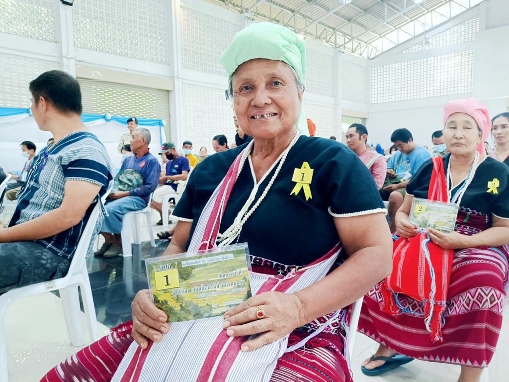 ราษฏรแม่ลาน้อย ยิ้มดีใจ รับมอบสมุดประจำตัวให้ผู้ได้รับคัดเลือกให้ทำกินในชุมชนตามนโยบายรัฐบาล ในลักษณะแปลงรวม (คทช.) พื้นที่ป่าสงวนแห่งชาติ “ป่าแม่ยวมฝั่งขวา” ที่ อำเภอแม่ลาน้อย