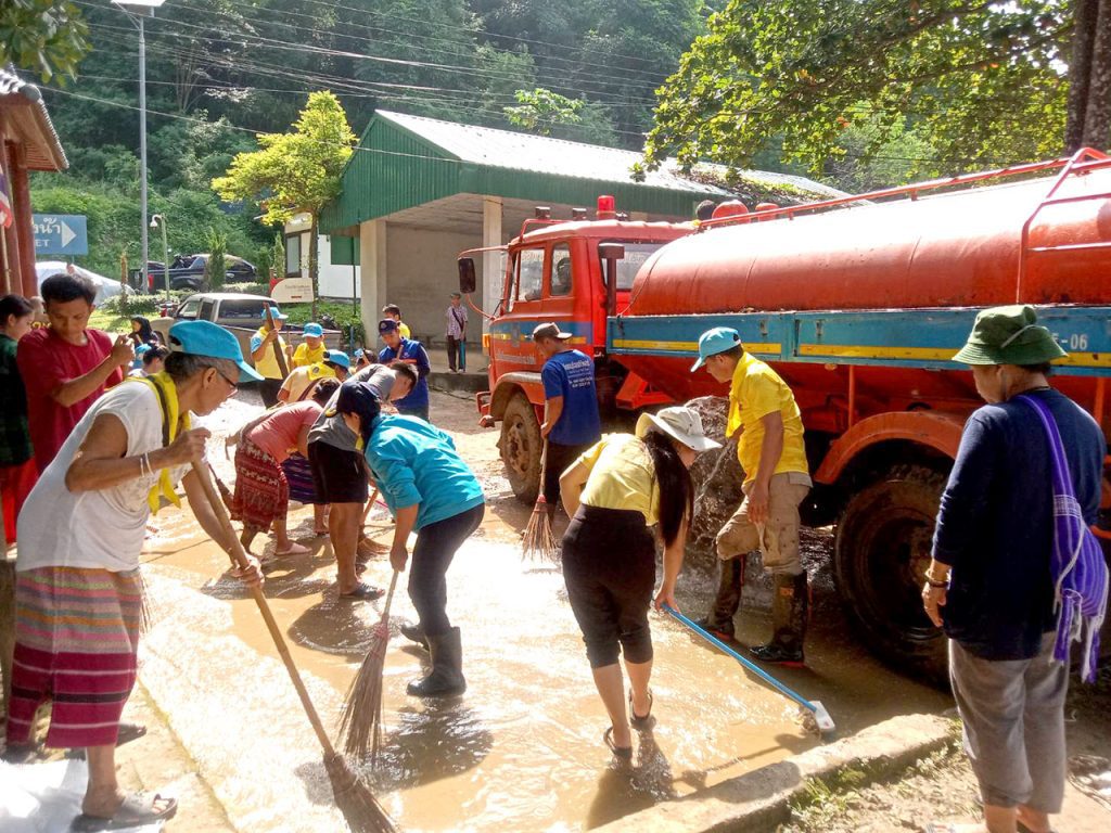 ฟื้นฟูแม่สามแลบ ส่วนราชการพี่น้องประชาชนร่วมจัดกิจกรรมจิตอาสาทำความสะอาดบ้านเรือน อาคารสถานที่หลังน้ำสาละวินลดระดับ