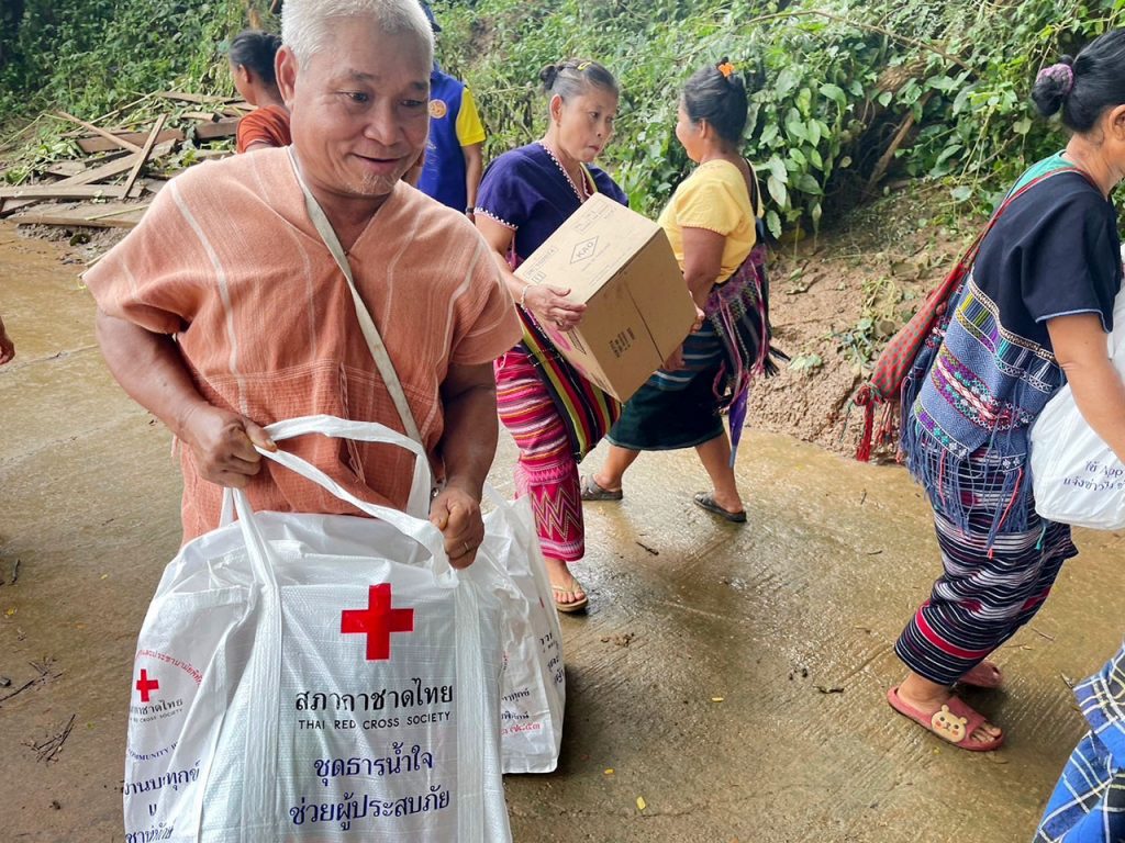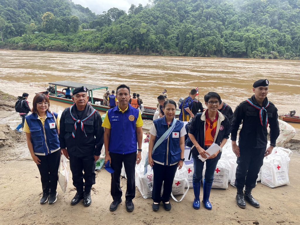 โดยได้รับมอบเครื่องอุปโภค – บริโภค จากสถานีกาชาดที่ 3 เชียงใหม่นำชุดธารน้ำใจ สภากาชาดไทย เพื่อส่งมอบบรรเทาและเยียวยาผู้ประสบภัยน้ำท่วม สิ่งของบริจาค เสื้อผ้าข้าวสาร อาหารแห้ง ผักสดฯลฯ ลำเลียง ขึ้นเรือ จำนวน 3 ลำ เพื่อนำไปส่งมอบให้แก่ราษฎร จำนวน 60 ครัวเรือน ซึ่งเป็นผู้ประสบภัยพิบัติ บ้านท่าตาฝั่ง ต.แม่ยวม อ.แม่สะเรียง จ.แม่ฮ่องสอน โดยมี นางจีรนันท์ เจียมเจริญ ผู้อำนวยการศูนย์พัฒนาราษฎรบนพื้นพื้นที่สูงจังหวัดแม่ฮ่องสอน และ ผู้บริหารเทศบาลตำบลแม่ยวม ร่วมช่วยเหลือ