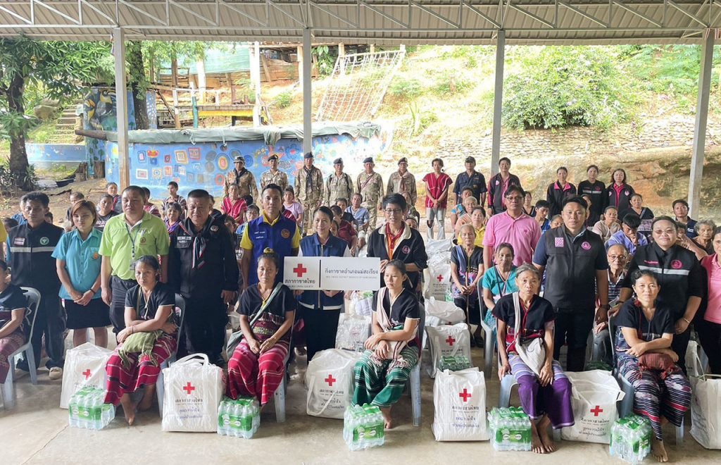 กิ่งกาชาดอำเภอแม่สะเรียง พร้อมด้วย คณะทำงานได้นำสิ่งของบรรเทาทุกข์ ชุดธารน้ำใจ สภากาชาดไทย มอบให้ราษฎรผู้ประสบความเดือดร้อน จากแม่น้ำสาละวิน ท่วมบ้านเรือนริมฝั่งเสียหาย