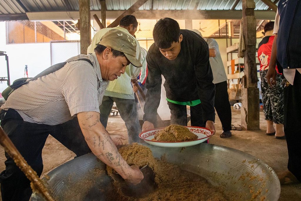 วันที่ 11 กุมภาพันธ์ 2568 ณ วัดผาบ่องใต้ บ้านผาบ่อง หมู่ที่ 1 ตำบลผาบ่อง อำเภอเมือง จังหวัดแม่ฮ่องสอน นายอมร ศรีตระกูล กำนันตำบลผาบ่อง นำคณะศรัทธา ประชาชนบ้านผาบ่อง ร่วมกันกวนข้าวหย่ากู๊ ประจำปี 2568 เพื่ออนุรักษ์วัฒนธรรมประเพณีอันดีงามของชาวไทใหญ่ให้คงอยู่ อีกทั้งเพื่อเป็นการขอบคุณพระแม่โพสพที่ช่วยปกปักดูแลรักษาข้าวของชาวนา สร้างความสามัคคีของคนในชุมชน และเพื่อบูชาพระพุทธเจ้า โดยภาคเช้าเริ่มกวนข้าวหย่ากู๊แล้วบรรจุหีบห่อ และในช่วงบ่ายวันเดียวกัน ได้นำไปแจกจ่ายให้กับประชาชนในเขตตำบลผาบ่องต่อไป
