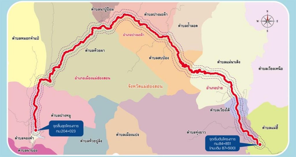 โดยการประชุมในครั้งนี้ ได้นำเสนอสรุปผลการคัดเลือกรูปแบบการพัฒนาโครงการ โดยมีรายละเอียดต่างๆ ดังนี้ สำหรับแนวเส้นทางโครงการ มีจุดเริ่มต้นโครงการบริเวณทางหลวงหมายเลข 1095 ประมาณ กม.ที่ 84+851 ที่ ต.แม่นาเติง อ.ปาย จ.แม่ฮ่องสอน และไปสิ้นสุดโครงการบริเวณทางหลวงหมายเลข 1095 ประมาณ กม.ที่ 204+023 ที่ ต.ปางหมู อ.เมือง จ.แม่ฮ่องสอน ระยะรวมทางประมาณ 116.523 กม. และมีแนวศึกษาเพิ่มเติม 2 จุด คือ ทางหลวงหมายเลข 1395 ระยะทางศึกษา 2.30 กม. และทางหลวงหมายเลข 1285 ระยะทางศึกษา 1 กม. โดยโครงการฯ จะดำเนินการศึกษาและออกแบบปรับปรุงถนนเดิมจาก 2 ช่องจราจรให้มีขนาด 4 ช่องจราจรหรือตามความเหมาะสม โดยแยกพิจารณาเปรียบเทียบ 3 ลักษณะ คือ
