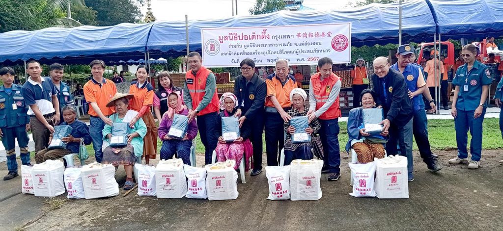 วันที่ 10 พฤศจิกายน 2567 มูลนิธิป่อเต็กตึ๊งจากกรุงเทพ นำโดย นายรัชพร ประสงค์ทรัพย์ หัวหน้าแผนกบรรเทาสาธารณภัย พร้อมคณะได้เดินทางไปร่วมกับมูลนิธิบรรเทาสาธารณภัยจังหวัดแม่ฮ่องสอน โดย นายโชติ นรามณฑล ประธานมูลนิธิฯ จัดโครงการต้านภัยหนาวประจำปี 2567 โดยนำผ้าห่มกันหนาวจำนวน 1,000 ผืน พร้อมด้วยเครื่องอุปโภคบริโภคจำนวน 8 รายการไปมอบช่วยเหลือราษฎรชาวไทยภูเขาในเขตพื้นที่ ต.ปางหมู และ ต.ผาบ่อง อ.เมืองแม่ฮ่องสอน รวม 1,000 ครอบครัว หลังจากที่ฝนหยุดตกส่งผลให้สภาพอากาศในพื้นที่จังหวัดแม่ฮ่องสอนโดยเฉพาะบนพื้นที่สูงอากาศเริ่มหนาวเย็นลง