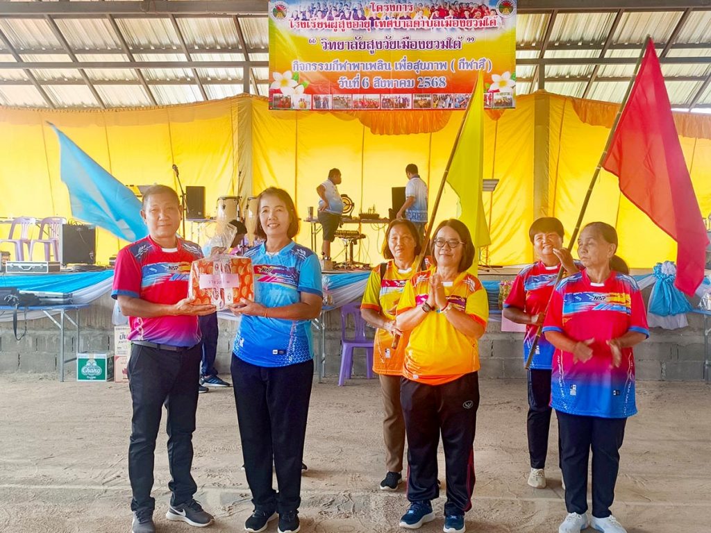 วันที่ 6 สิงหาคม 2568 ณ ศาลาเอนกประสงค์บ้านทุ่งพร้าว นายวิชัย กองแก้ว นายกเทศมนตรีตำบลเมืองยวมใต้ ได้เดินทางเป็นประธานเปิดการแข่งขัน กีฬาพาเพลิน เพื่อสุขภาพ (กีฬาสี) โรงเรียนผู้สูงอายุเทศบาลตำบลเมืองยวมใต้ โดยมี นายชูศักดิ์ บำรุงธรรม ประธานนักเรียนผู้สูงวิทยาลัยสูงวัยเมืองยอมใต้ นำทัพนักกีฬาโรงเรียนผู้สูงอายุเทศบาลตำบลเมืองยวมใต้ กว่า 100 คน เข้าร่วมการแข่งขัน โดยมีกำนันตำบลแม่สะเรียง ผู้ใหญ่บ้าน ประธานสภา สมาชิกสภาเทศบาลตำบลเมืองยวมใต้ เข้าร่วมกิจกรรม โดยมีการแข่งขันกีฬา และ เกมส์ รวม 10 รายการ
