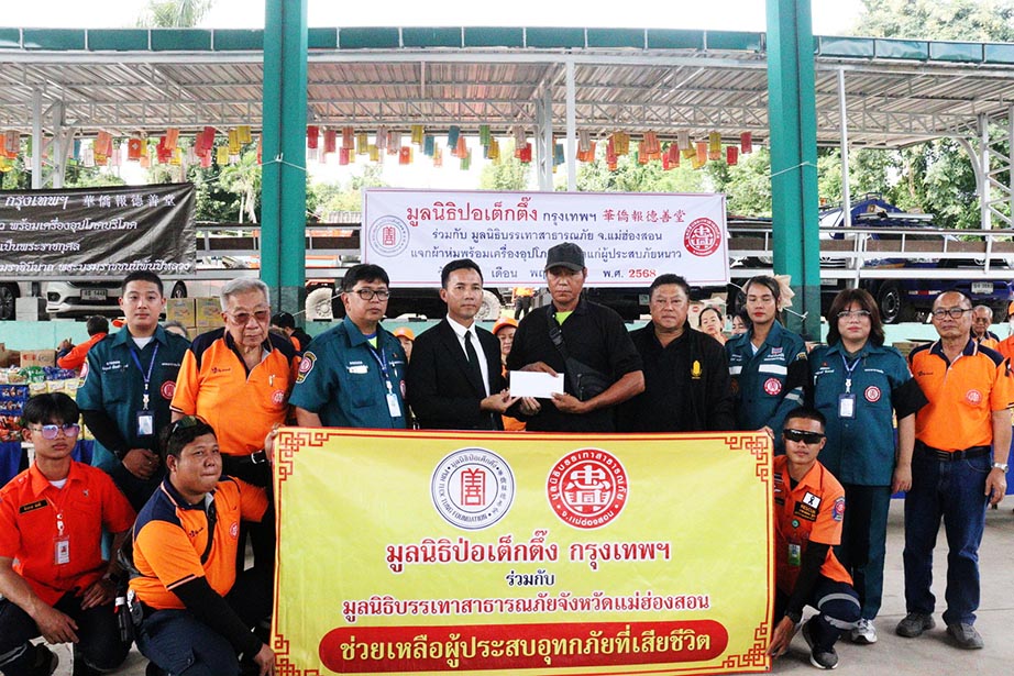 มูลนิธิบรรเทาสาธารณภัยแม่ฮ่องสอน ร่วมกับ มูลนิธิป่อเต็กตึ้ง กรุงเทพฯ แจกจ่ายเครื่องนุ่งห่มกันหนาวพร้อมเครื่องอุปโภคบริโภคราษฎรผู้ประสบภัยหนาวและอุทกภัย อ.แม่สะเรียง ถวายเป็นพระราชกุศล “สมเด็จพระพันปีหลวง”