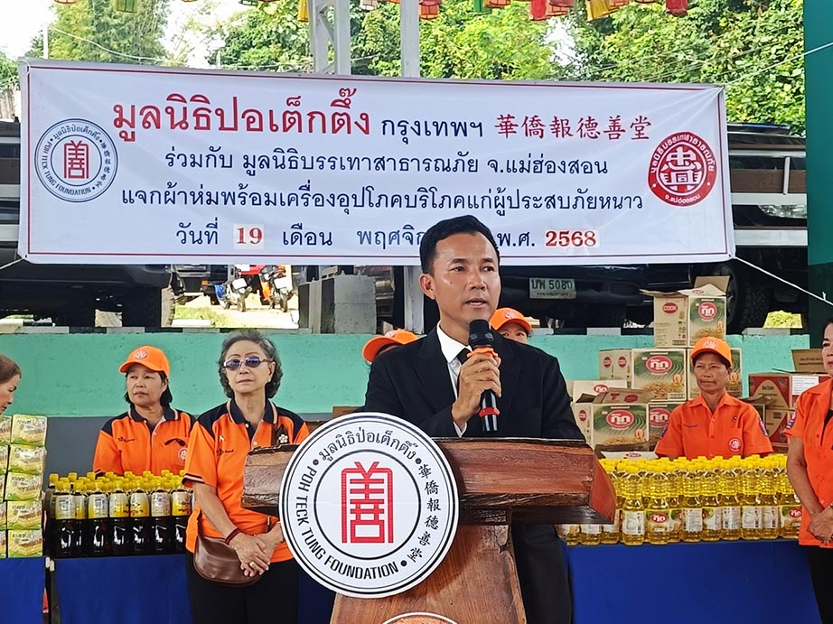 วันที่ 19 พฤศจิกายน 2568 องค์การบริหารส่วนตำบลแม่คง อ.แม่สะเรียง จ.แม่ฮ่องสอน นายรัชพร ประสงค์ทรัพย์ ตัวแทนมูลนิธิป่อเต็กตึ๊ง กรุงเทพฯ ร่วมกับ นายโชติ นรามณฑล ประธานมูลนิธิบรรเทาสาธารณภัย จ.แม่ฮ่องสอน จัดโครงการแจกผ้าห่มกันหนาวพร้อมเครื่องอุปโกคบริโภคแก่ผู้ประสบภัยหนาวในพื้นที่ อ.แม่สะเรียง จ.แม่ฮ่องสอน จำนวน 1,000 ชุด
