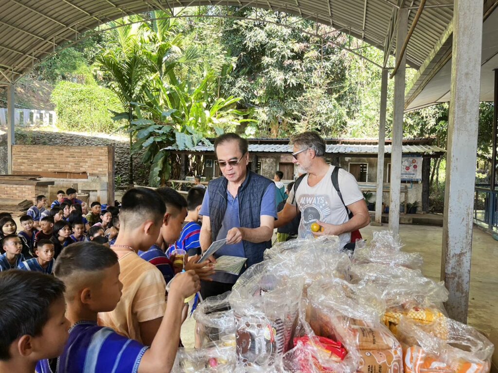 วันที่ 24 ธันวาคม 2568 คุณทรงศักดิ์ เขตกิตติคุณ ผู้สื่อข่าวไทยรัฐ ประจำประเทศอิตาลี พร้อม Mr.Alessandro De Santis ร่วม นายวีรวิชญ์ วิรัชศิลป์ เจ้าของน้ำดื่มคลาสสิค ได้เดินทางไปหมู่บ้านท่าตาฝั่งชายแดนฝั่งตะวันตกของประเทศไทย สัมผัสกับวิถีชีวิตลุ่มแม่น้ำสาละวิน กับหมู่บ้านเล็กๆ ที่อยู่ห่างไกลการเดินทางยากลำบาก อยู่ท่ามกลางธรรมชาติ มีภูเขาโอมล้อม และติดกับแม่น้ำสาละวิน พร้อมมอบอุปกรณ์เครื่องเขียน ขนมและผลไม้ ให้แก่เด็กๆนักเรียนในชุดชนเผ่าที่น่ารัก ผู้บริหารคณะครูนักเรียนและบุคลากรโรงเรียนบ้านท่าตาฝั่ง ตำบลแม่ยวม อำเภอแม่สะเรียง จังหวัดแม่ฮ่องสอน