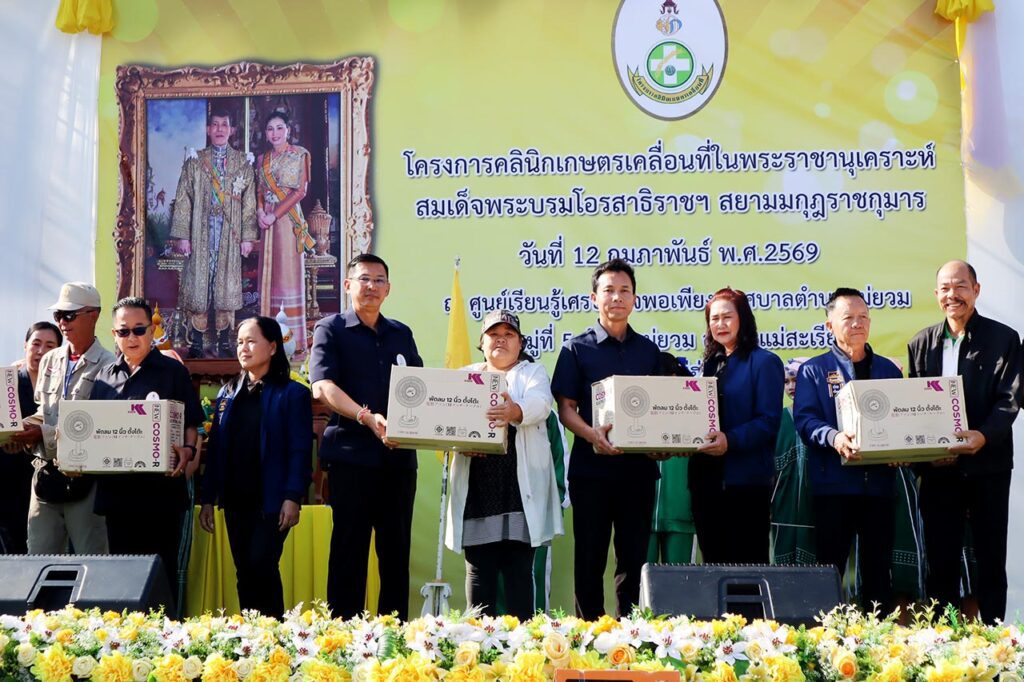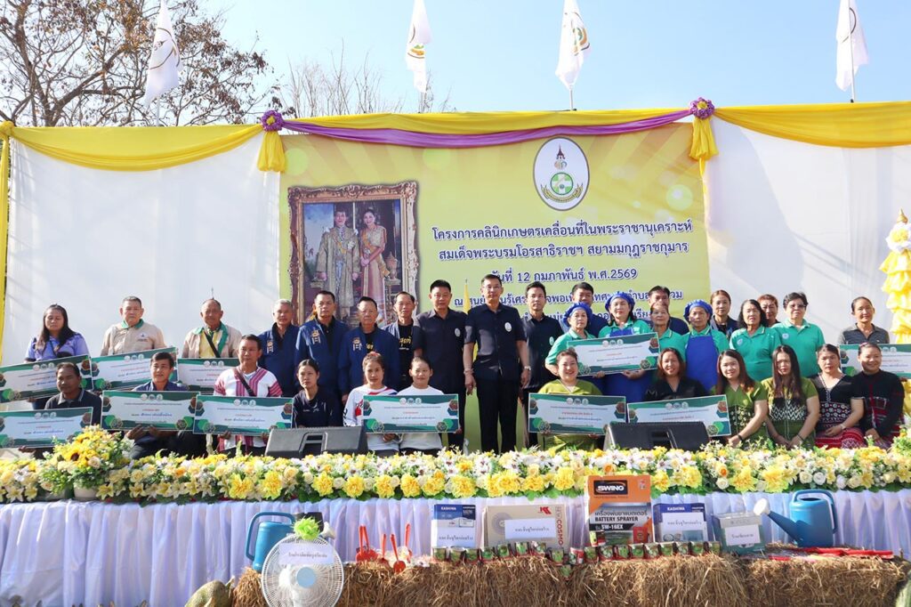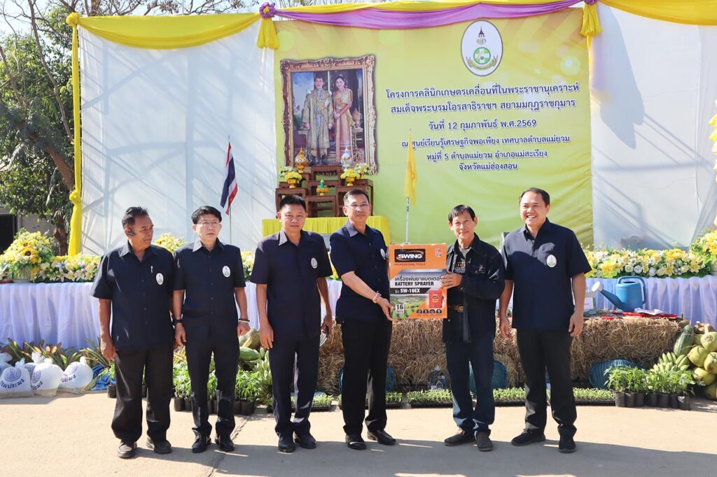 วันที่ 12 กุมภาพันธ์ 2569 ที่ลานอเนกประสงค์ศูนย์เรียนรู้เศรษฐกิจพอเพียง เทศบาลตำบลแม่ยวม อำเภอแม่สะเรียง จังหวัดแม่ฮ่องสอน นายวิบูรณ์ แววบัณฑิต ผู้ว่าราชการจังหวัดแม่ฮ่องสอน เป็นประธานเปิดโครงการคลินิกเกษตรเคลื่อนที่ในพระราชานุเคราะห์ สมเด็จพระบรมโอรสาธิราชฯ สยามมกุฎราชกุมาร ไตรมาส 2 ประจำปีงบประมาณ พ.ศ.2569 โดยมี นายวรศักดิ์ พานทอง นายอำเภอแม่สะเรียง พร้อมหัวหน้าส่วนราชการและหน่วยงานที่เกี่ยวข้องร่วมให้การต้อนรับ และมี นายพยุงศักดิ์ สิทธิลภ เกษตรจังหวัดแม่ฮ่องสอน กล่าวรายงานวัตถุประสงค์