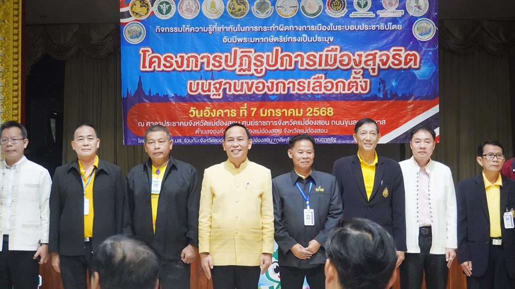วันที่ 9 มกราคม 2568 ณ ศาลาประชาคมจังหวัดแม่ฮ่องสอน นายบุญลือ ธรรมธรานุรักษ์ รองผู้ว่าราชการจังหวัดแม่ฮ่องสอน ประธานกรรมการการเลือกตั้งประจำองค์การบริหารส่วนจังหวัดแม่ฮ่องสอน เป็นประธานในพิธีเปิดให้ความรู้ที่เท่าทันในการกระทำผิดทางการเมืองในระบอบประชาธิปไตย อันมีพระมหากษัตริย์ทรงเป็นประมุช โครงการปฏิรูปการเมืองสุจริตบนฐานของการเลือกตั้ง โดยมี นายจักกฤช สวนดอก รองผู้อำนวยการสำนักงานคณะกรรมการการเลือกตั้งประจำจังหวัดแม่ฮ่องสอน กล่าวรายงาน