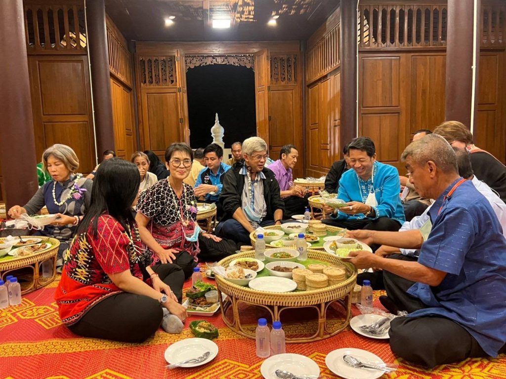 ต่อมาในช่วงค่ำ คณะกรรมาธิการการท่องเที่ยวสภาผู้แทนราษฎร พร้อมด้วยคณะอนุกรรมาธิการพิจารณาศึกษาแนวทางในการส่งเสริม พัฒนา และแก้ไขปัญหาการท่องเที่ยวภาคเหนือ และภาคตะวันออกเฉียงเหนือ ได้ชมกาดมั่วคัวฮอม ชิมอาหารขนมหวานพื้นบ้าน อาทิ ขนมจีนน้ำเงี้ยง ข้าวส้มข้าวกันจิ้น ขางปองทอด ขนมวง อะลาวา เป้งโม้ง เป็นต้น และ ร่วมวงขันโตกชิมอาหารพื้นบ้านอำเภอแม่สะเรียง อาทิเช่น ไส้อั่ว น้ำพริกหนุ่มแคบหมู ฮังเล ตำเนื้อหมู พร้อมชมการแสดงรำโตและนกกิ่งกะหร่า ซึ่งสร้างความประทับให้กับคณะฯที่เดินทางมาติดตามงานในครั้งนี้เป็นอย่างมาก