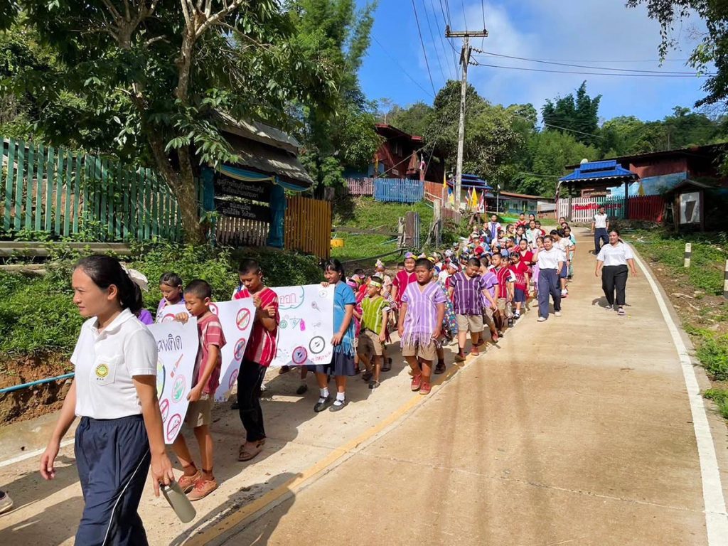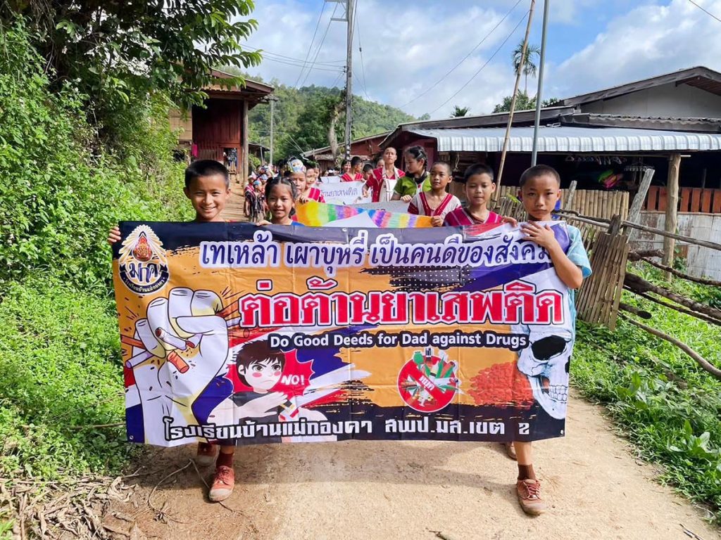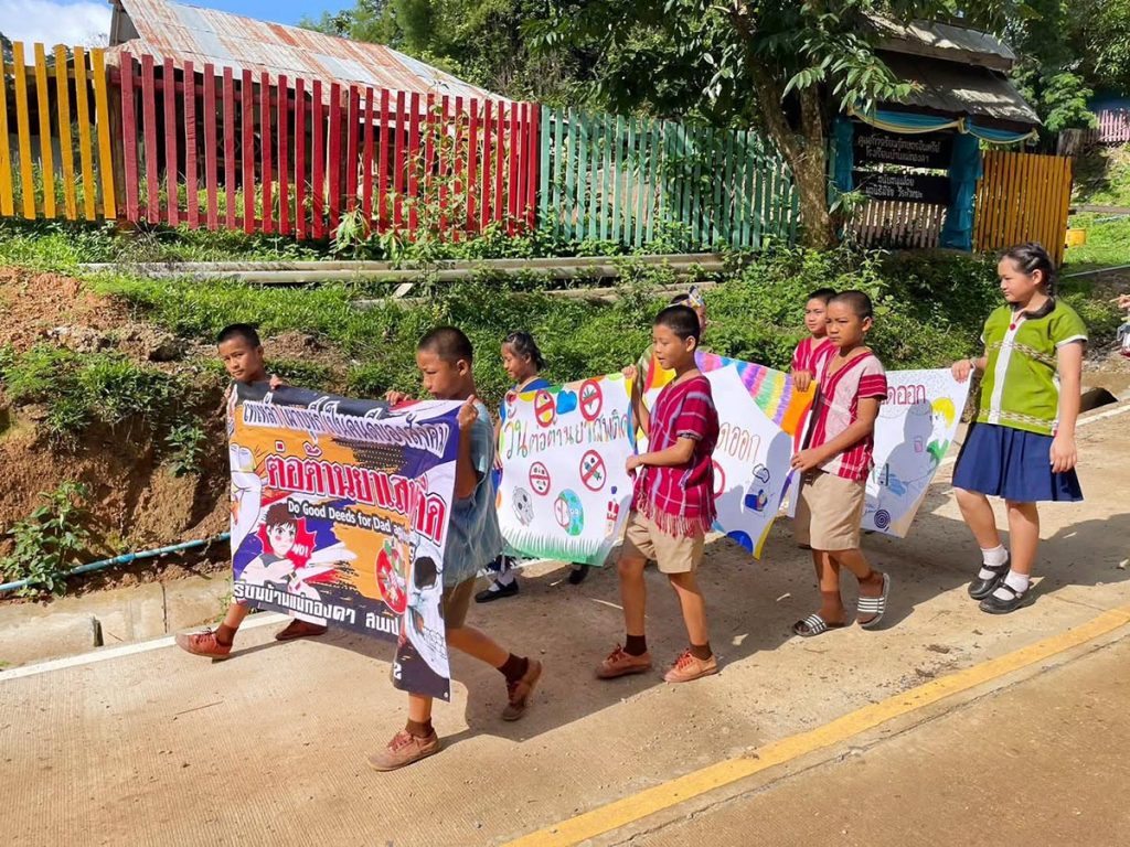 โรงเรียนบ้านแม่กองคา สร้างความตระหนักในชุมชน เดินรณรงค์วันต่อต้านยาเสพติดโลกและไข้เลือดออก