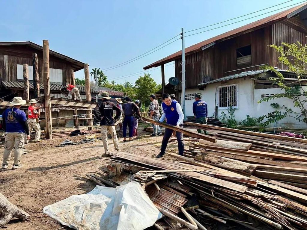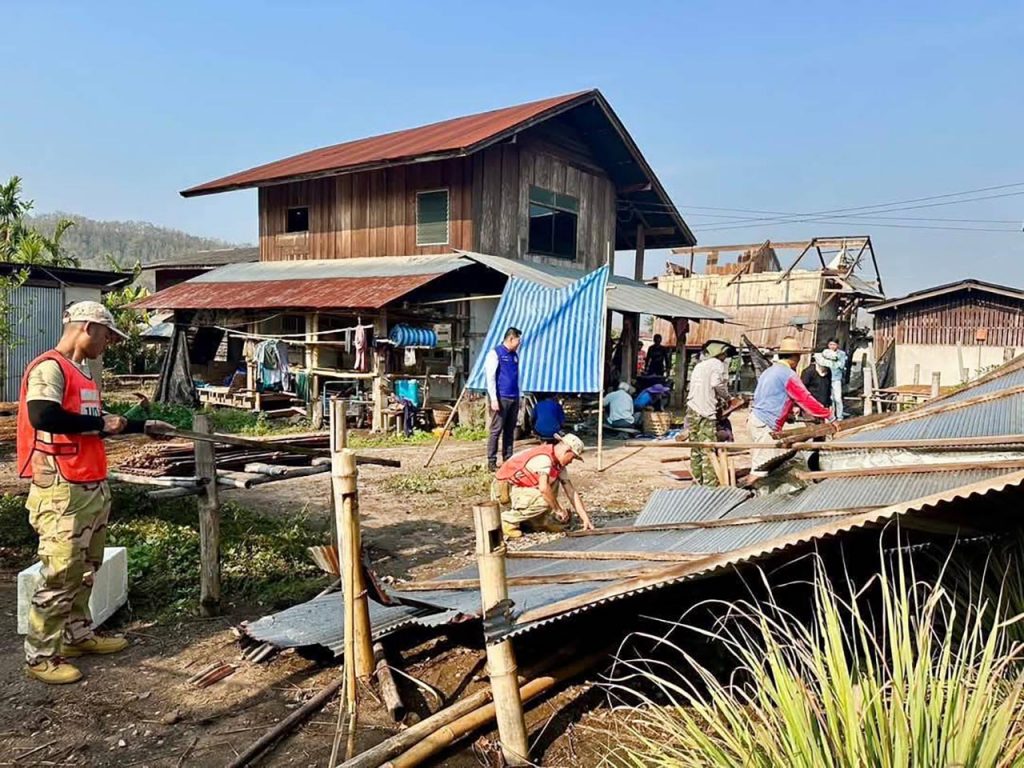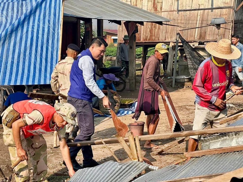 วันที่ 11 มีนาคม 2568 บ้านแม่ลาน้อย หมู่ที่ 1 ตำบลแม่ลาน้อย จังหวัดแม่ฮ่องสอน ว่าที่ร้อยตรี วิทยา โปทาศรี นายอำเภอแม่ลาน้อย นายชนะไพศาล บุษบาไพร ปลัดอำเภอหัวหน้าฝ่ายความมั่นคง นายกเทศมนตรีตำบลแม่ลาน้อย กำนัน ผู้ใหญ่บ้าน สมาชิก อส.และประชาชนจิตอาสา ลงพื้นที่มอบถุงยังชีพและร่วมบูณรณาการรื้อ ซ่อมแซม บ้านเรือนราษฎรที่ได้รับความเสียหายจากลมและฝน