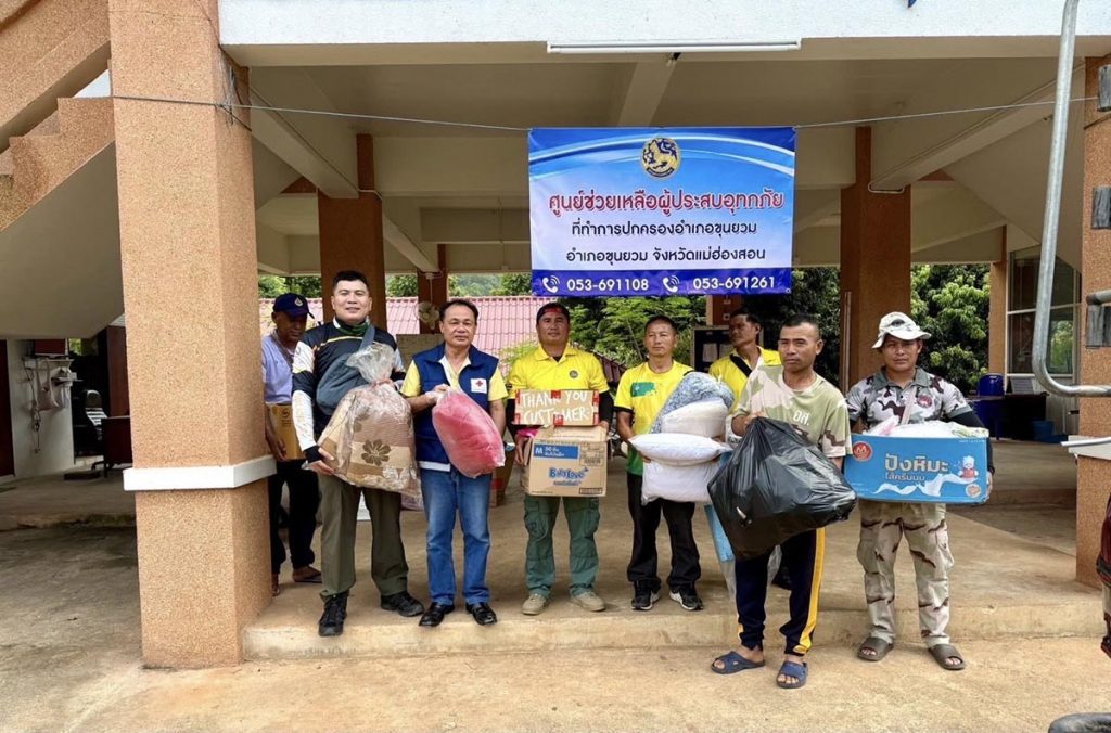 นายอำเภอแม่ลาน้อย นายอำเภอขุนยวม ร่วมบูรณาการส่งมอบสิ่งของช่วยเหลือราษฏรที่ประสบภัยน้ำป่าไหลหลากบ้านห้วยหมาก-ลาง