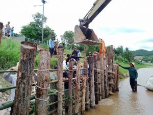 Mae La Noi, river bank collapses again Create a defense line, use big bags mixed with local wisdom to solve flood problems, Flash floods, mudslides, Mae Hong Son, Thailand 7