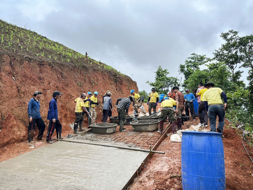 วันนี้ 12 ก.ค. 2567 ว่าที่ร้อยตรี วิทยา โปทาศรี นายอำเภอแม่ลาน้อย นำส่วนราชการ ผู้บริหารและพนักงานองค์การบริหารส่วนตำบลสันติคีรี สมาชิก อส. กำนัน ผู้ใหญ่บ้าน ประชาชนจิตอาสาพระราชทาน ร่วมก่อสร้างถนนคอนกรีตเสริมไม้ไผ่บริเวณบ้านห้วยมะกอก หย่อมบ้านห้วยตองเก๊าะ หมู่ที่ 4 ตำบลสันติคีรี อำเภอแม่ลาน้อย จังหวัดแม่ฮ่องสอน ซึ่งฝนตกถนนลื่นมาก