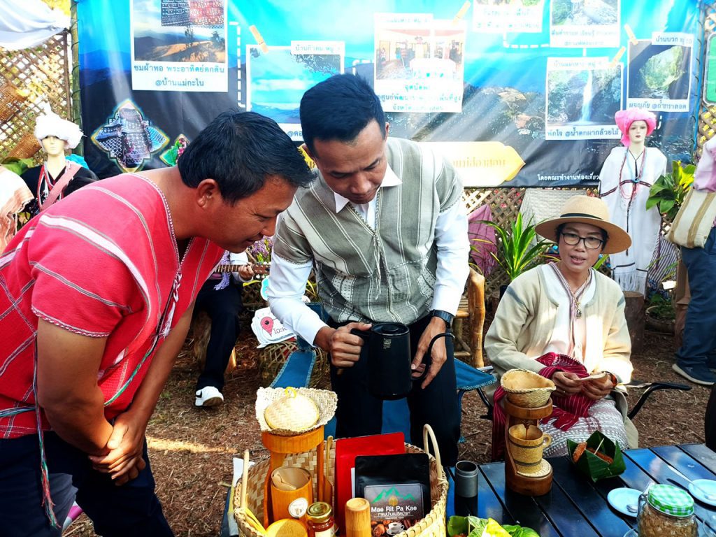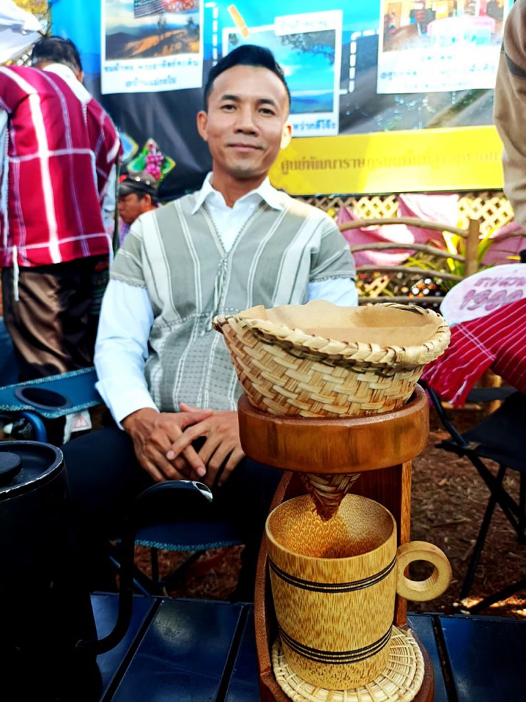นายอำเภอแม่สะเรียง โชว์ ดริปกาแฟจากหวดไม้ไผ่ “หว่าเนอมู” ผลิตภัณฑ์แปรรูปการเชื่อมโยงวิถีชีวิต ชนเผ่าปกาเญอ