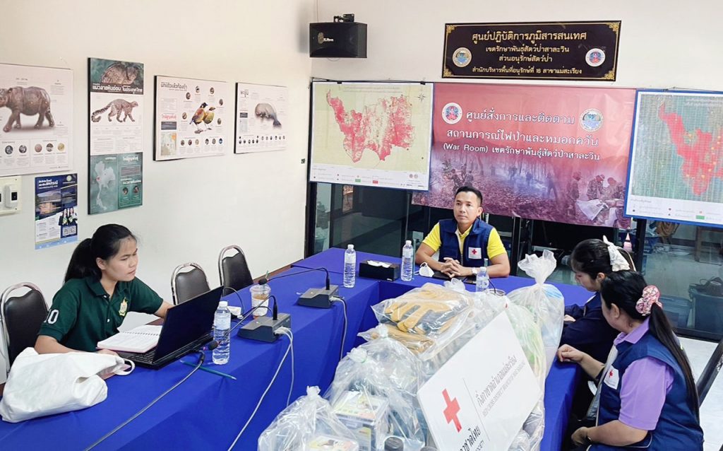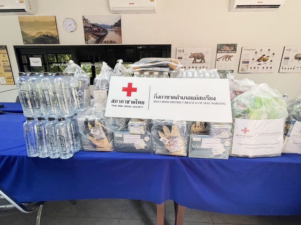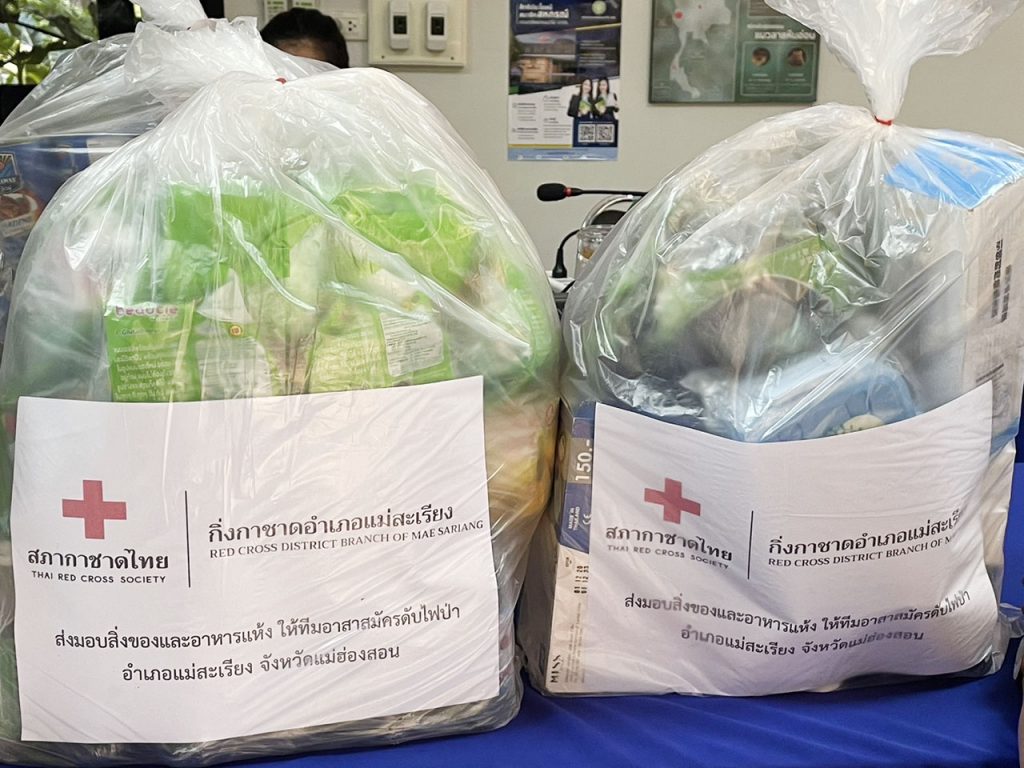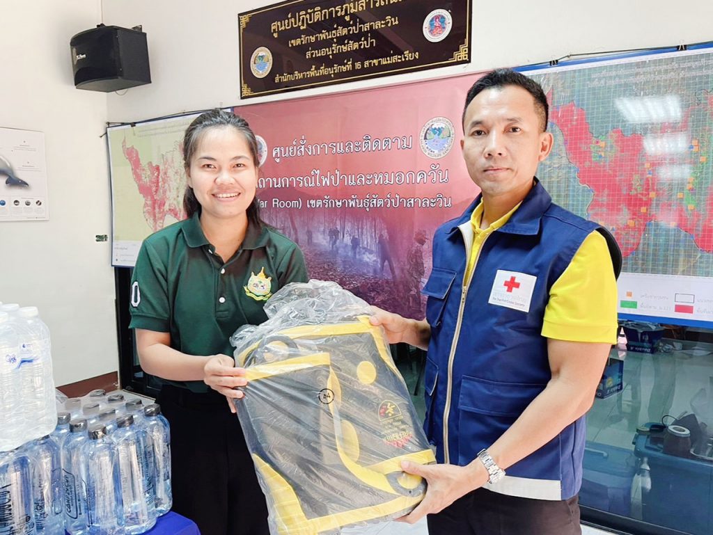 พร้อมนี้ ได้มอบเสบียงและของใช้จำเป็นสำหรับดับไฟป่า จากกิ่งกาชาดอำเภอแม่สะเรียง ซึ่งได้รับการจาคช่วยเหลือจากทุกภาคส่วน เพื่อนำไปสนับสนุุนภารกิจเฝ้าระวังและดับไฟป่า แก่ราษฎรจิตอาสาดับไฟป่าในพื้นที่อำเภอแม่สะเรียง จำนวน 15 รายการ ซึ่งกำลังปฎิบัติหน้าที่ ในพื้นที่เขตรักษาพันธุ์สัตว์ป่าสาลาวิน เนื้อที่ ประมาณ 6 แสนไร่ จำนวน 60 ชุดๆละ 3 คน รวมทั้งสิ้น 255 คน ได้มอบหมายให้หัวหน้าเขตรักษาพันธุ์สัตว์ป่าสาละวิน นำไปแจกจ่ายอย่างทั่วถึงและถึงมือผู้ปฏิบัติงาน ต่อไป