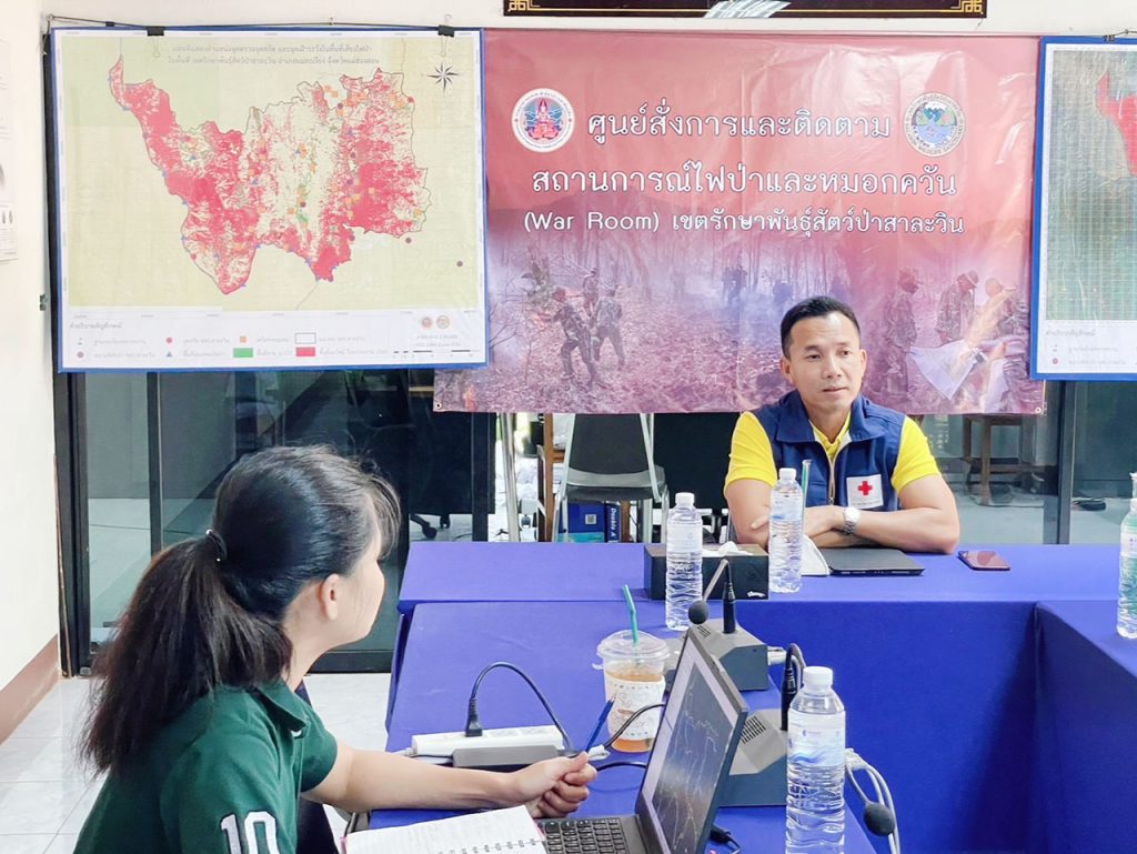 นายอำเภอแม่สะเรียง ลงพื้นที่ติดตามสถานการณ์ไฟป่า พร้อมมอบสิ่งของบริจาคช่วยเหลือราษฎรจิตอาสาดับไฟป่า “เขตรักษาพันธุ์สัตว์ป่าสาละวิน”