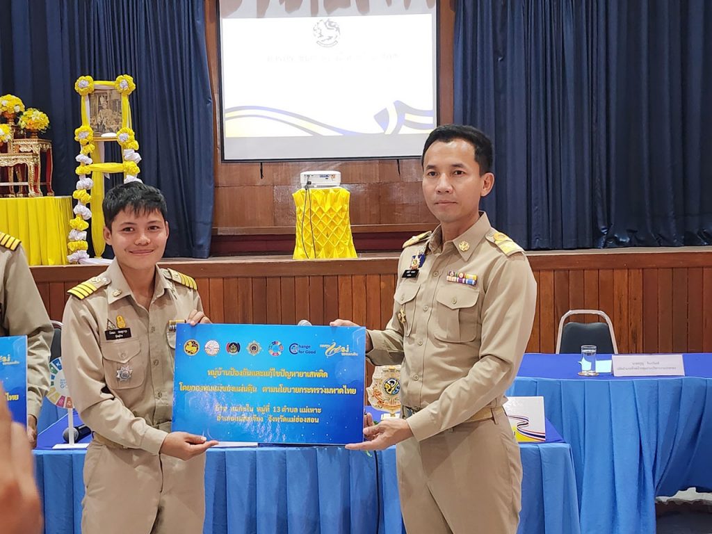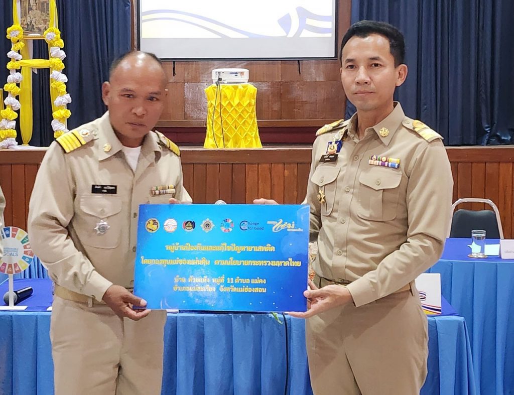 อำเภอแม่สะเรียง มอบป้าย 7 หมู่บ้านป้องกันและแก้ไขปัญหายาเสพติด เปิดกิจกรรม Kick Off หมู่บ้านป้องกันและแก้ไขปัญหายาเสพติด โดยกองทุนแม่ของแผ่นดิน ตามนโยบายกระทรวงมหาดไทย ระดับจังหวัด และระดับอำเภอ