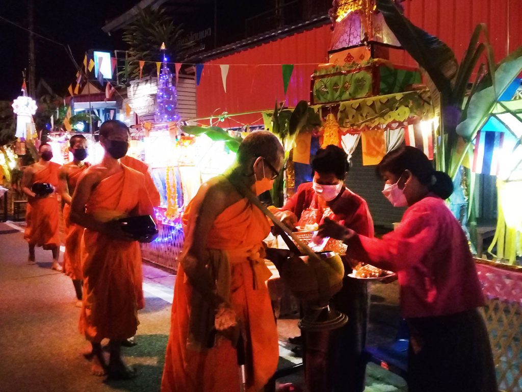 การตักบาตรอาหารสดในวันแรก เนื่องจากชาวอำเภอแม่สะเรียงเชื่อว่า การตักบาตรที่หน้าบ้านของตนเองจะเป็นสิริมงคลต่อบ้านและคนในครอบครัว ซึ่งจะแตกต่างจากงานประเพณีออกพรรษาในท้องถิ่นอื่น การตักบาตรทั้ง 3 วัน มีพระสงฆ์ออกบิณฑบาตจากวัดต่าง ๆ ไปตามเส้นทางปกติที่ทำเป็นกิจวัติ กว่า 200 รูป เป็นลักษณะวิถีชีวิตของพุทธศาสนิกชนชาวอำเภอแม่สะเรียงที่จะรอตักบาตรพระบริเวณหน้าบ้านเรือนที่อยู่อาศัยที่ประดับประดาด้วยซุ้มราชวัตรประทีปโคมไฟ ซึ่งการตักบาตรในช่วงเทศกาลออกพรรษา ถือเป็ฯการพบปะระหว่างญาติพี่น้องและเพื่อนฝูงที่ได้เดินทางกลับบ้านในช่วงงานบุญประเพณีออกหว่า