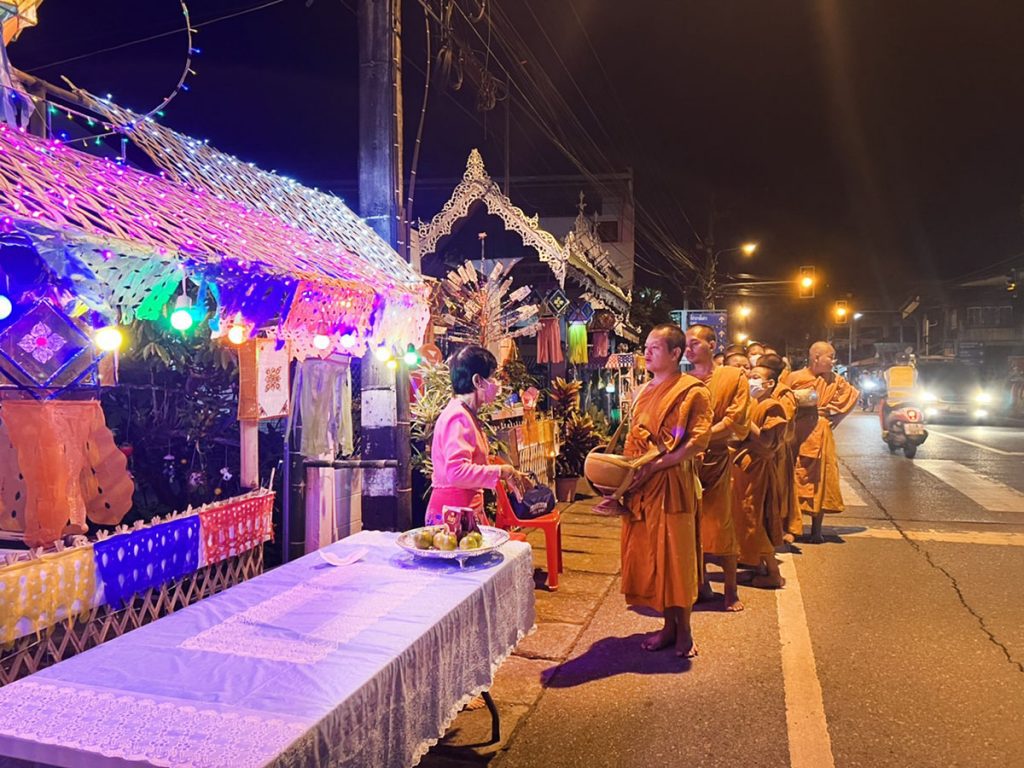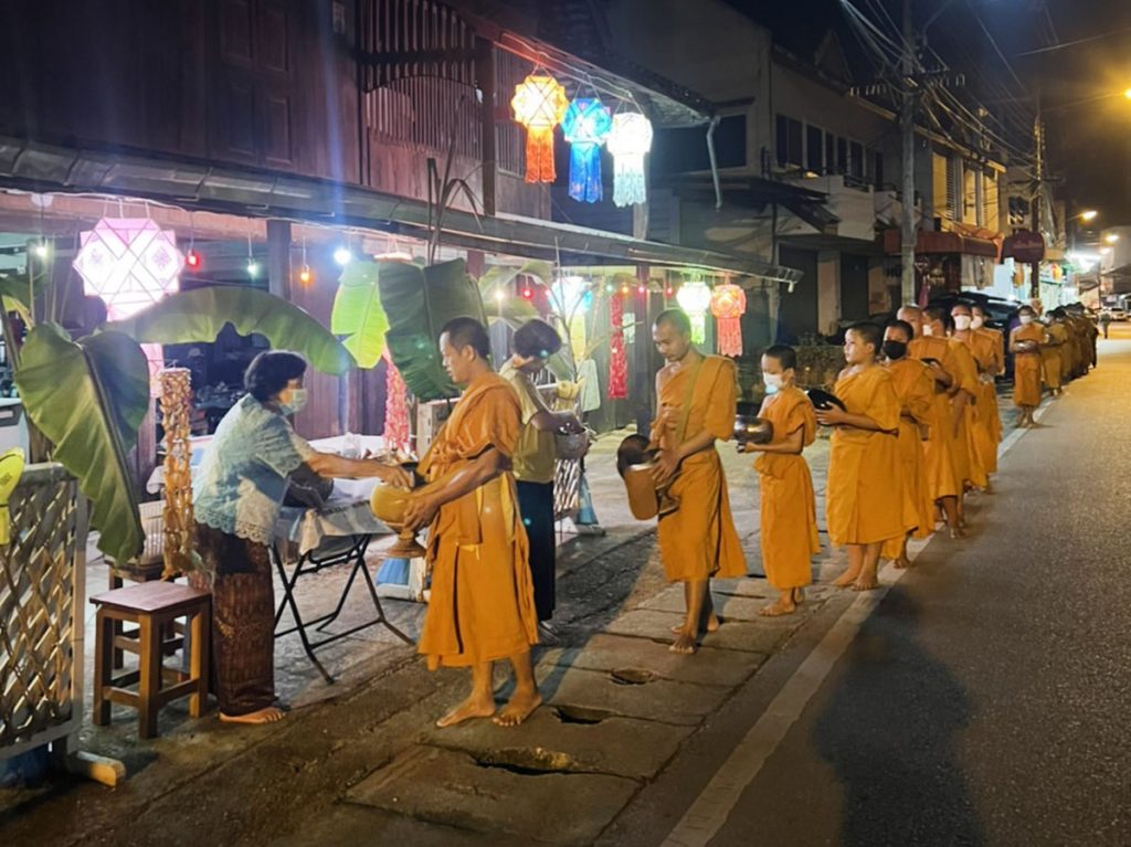 วันที่ 9 ตุลาคม 2565 ที่บริเวณถนนสายบ้านโป่ง ต.แม่สะเรียง อ.แม่สะเรียง จ.แม่ฮ่องสอน เป็นถนนสายหนึ่งที่มีความงดงามในช่วงงานบุญประเพณีออกหว่า หน้าบ้านเรือนราษฏรได้มีการจัดประดับประดาราชวัตรประทีปโคมไฟอย่างงดงาม และ เช้าวันนี้ เป็นเช้าวันแรก การทำบุญตักบาตร ซึ่งเป็นเอกลักษณ์ที่สำคัญของชาวอำเภอแม่สะเรียง ที่เป็นการตักบาตรที่เช้าที่สุดในประเทศไทยโดยจะมีการตักบาตรพระสงฆ์ที่หน้าบ้านของตนเองในตอนเช้าตรู่ ตั้งแต่เวลา 04.00 น. เป็นต้นไป ตลอดทั้ง 3 วัน ตั้งแต่วันที่ 9 -11 ตุลาคม