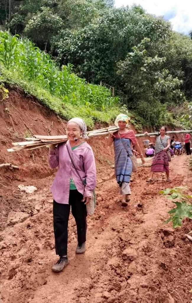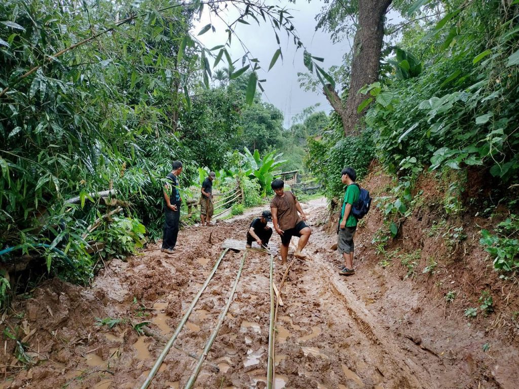 วันที่ 1 กันยายน 2567 นายสุวัต ษมาจิตโอบอ้อม ผู้ใหญ่บ้านท่าตาฝั่ง ม.7 ต.แม่ยวม อ.แม่สะเรียง จ.แม่ฮ่องสอน ได้เปิดเผยว่า พี่น้องชาวบ้าน พร้อมด้วยผู้ช่วยจากหย่อมบ้านแม่ปอ ได้ช่วยกันซ่อมแซมถนนด้วยวิธีภูมิปัญญาชาวบ้าน สานไม้ไผ่วางทับถนนจุดที่เป็นขี้โคลนดินเหนียว เพื่อให้สามารถสัญจรได้อย่างสะดวกและปลอดภัยมากยิ่งขึ้น โดยกิจกรรมดังกล่าว ได้ดำเนินการตลอดทั้งวันของวันที่ 31 สิงหาคม 2567 ที่ผ่านมา ซึ่ง มีคุณครูจาก ศศช. บ้านแม่ปอ ได้สนับสนุนเครื่องดื่มและอาหารร่วมกับเพื่อนจากต่างจังหวัดเพื่อสนับสนุนในการร่วมด้วยช่วยกัน