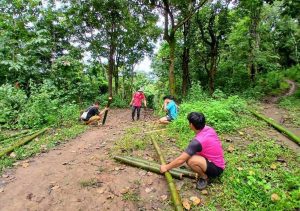Villagers weave bamboo to cover muddy roads, local wisdom, rainy season, Mae Yuam, Mae Sariang, Mae Hong Son, Thailand 7