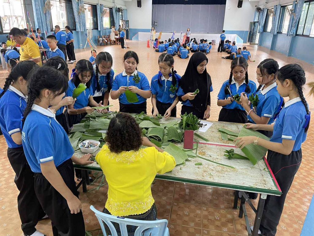 วันที่ 11 กันยายน 2567 ที่ห้องประชุมโรงเรียนทองสวัสดิ์วิทยาคาร เด็กนักเรียนกลุ่ม เป้าหมาย 130 คน ได้เรียนรู้การอนุรักษ์ภูมิปัญญาท้องถิ่นจากคณะวิทยากรที่มีความรู้ภูมิปัญญาด้านต่างๆ เพื่อให้ความรู้ และ ถ่ายทอดวิธีทำต่างๆให้เยาวชนและเด็กนักเรียนได้เรียนรู้ผ่านการปฏิบัติจริง อาทิ การทำโคม 16 เหลี่ยม โดย นายสรุศักดิ์ ตันวงศ์ษา การทำตุงจ่อง โดย นางยุพา ทัศนพิทักษ์กุล การทำโคมหูกระต่าย โดย นางเกษตร ปวงคำคง การประดิษฐ์ใบตอง โดย นางประชุมพร อินทะวงศ์ การนวดแผนโบราณ โดย นางสายฝน แก้วสถิต และ การพับดอกไม้ประดิษฐ์ โดย นางณงนุช ไชยวัณณ์