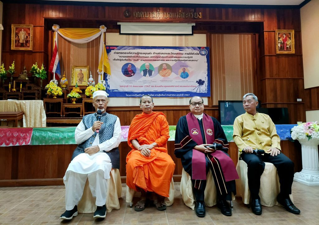 เทศบาลตำบลแม่สะเรียง จัดกิจกรรมเสริมสร้างสันติสุข สานสัมพันธ์สามศาสนา ถ่ายทอดองค์ความรู้ทรงคุณค่า ด้านศาสนาและวัฒนธรรม โครงการเสริมสร้างสังคมสันติสุข สานสัมพันธ์ สามศาสนา ประจำปี 2567 ภายใต้หัวข้อ “ความแตกต่างแต่ไม่แตกแยก เพราะทุกศาสนาต่างมีคำสอนและการปฏิบัติ เพื่อให้ผู้นับถือเป็น “คนดี” ตามครรลองของศาสนา และการปฏิบัติตนต่อศาสนสถาน”