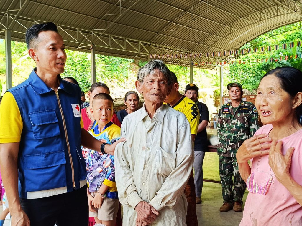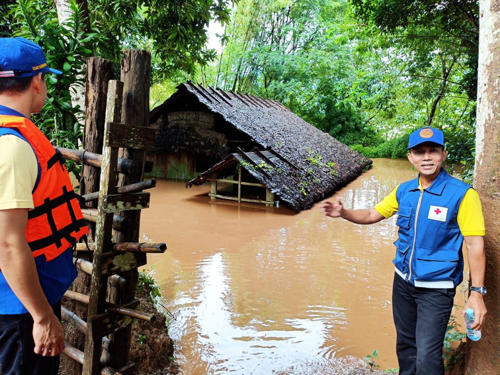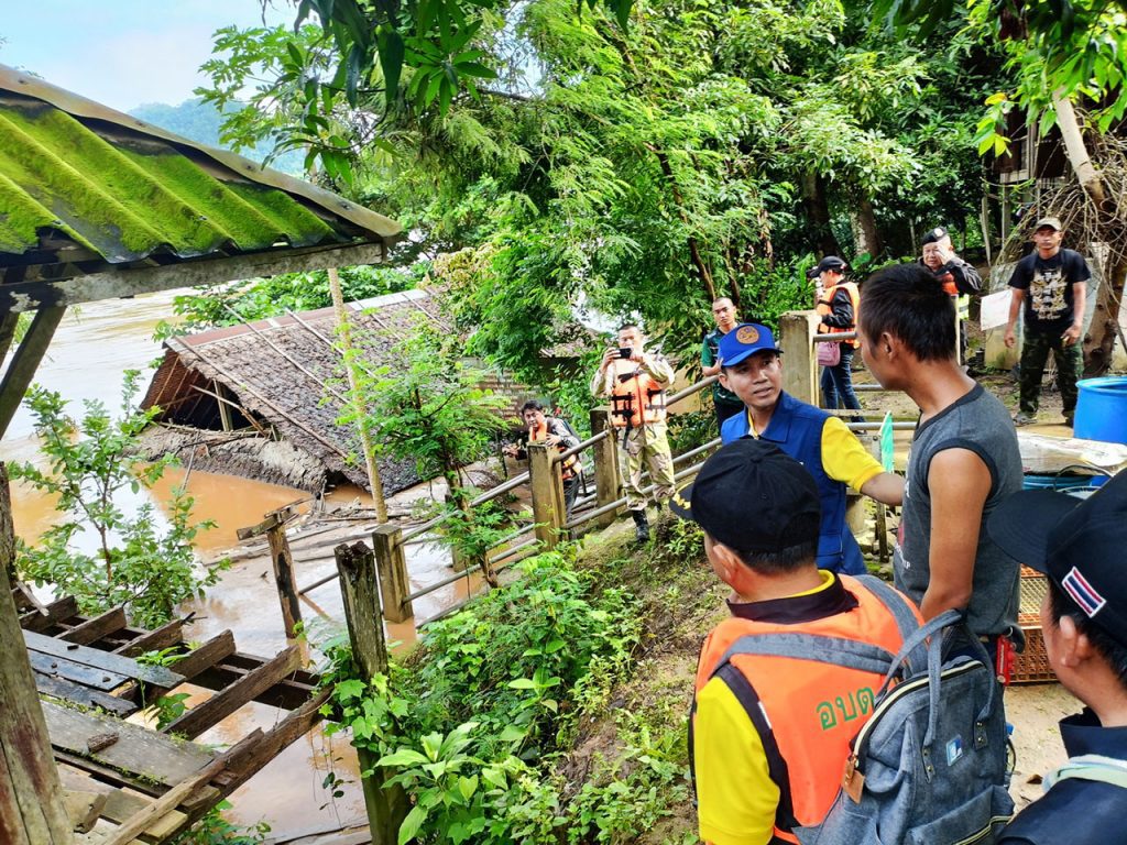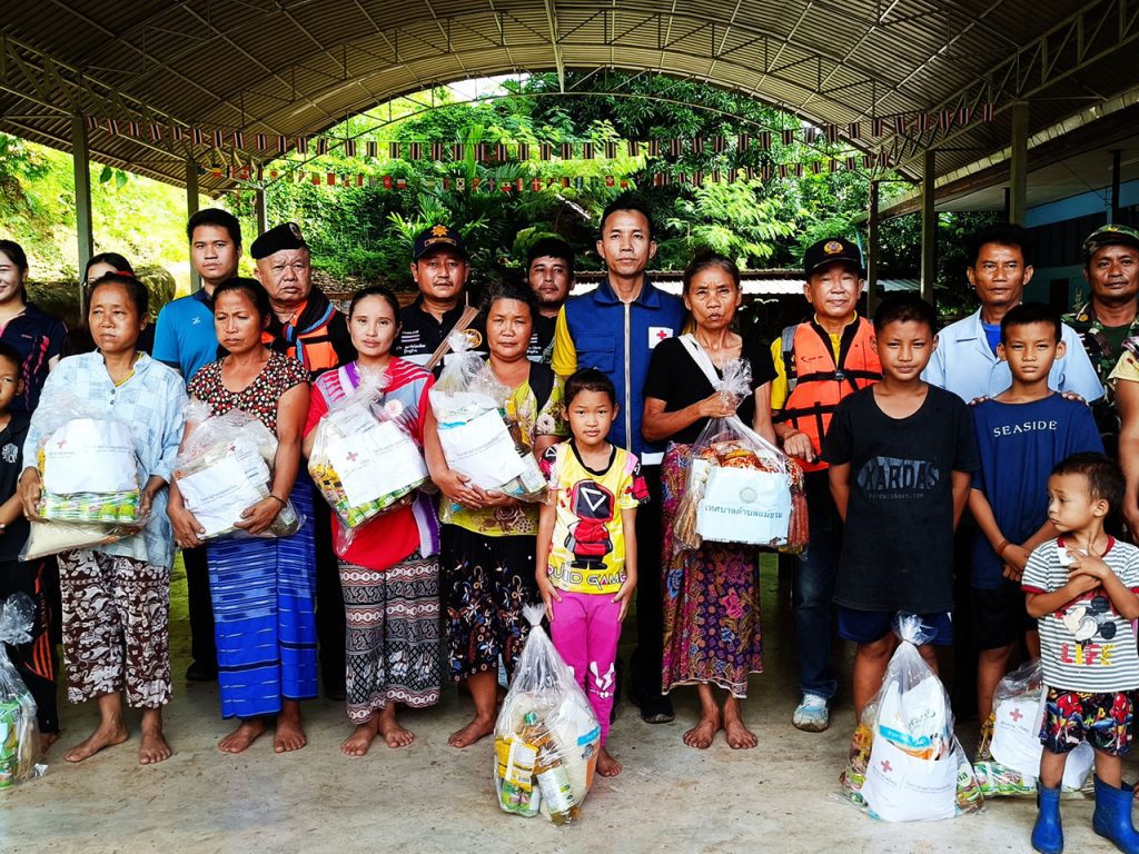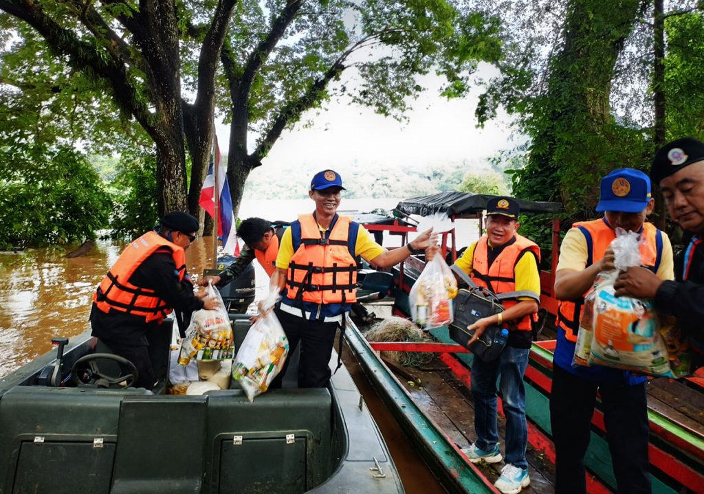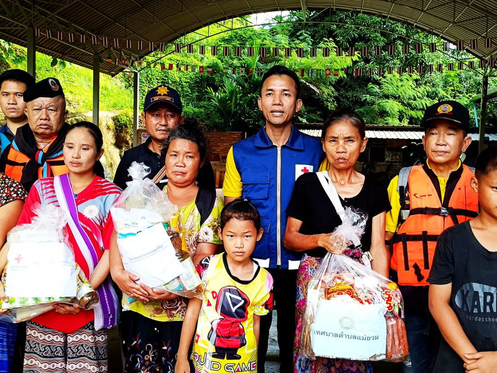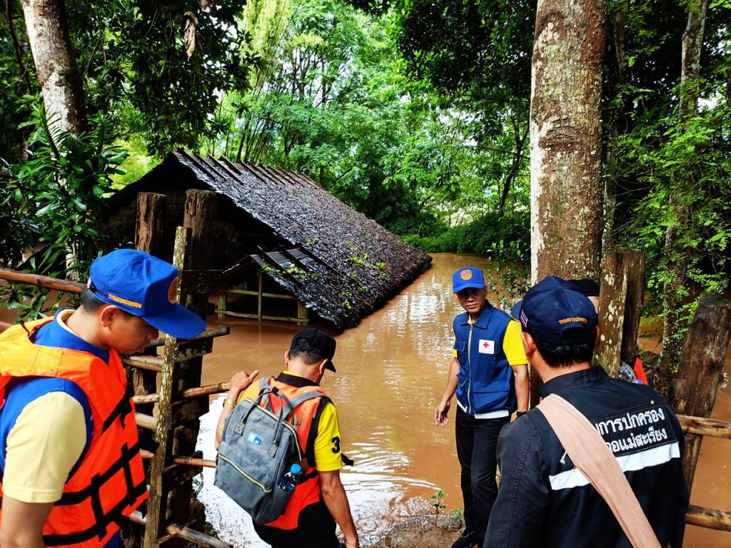 ไม่ทอดทิ้ง นายอำเภอแม่สะเรียง นั่งเรือลงพื้นที่ติดตามสถานการณ์น้ำท่วมบ้านท่าตาฝั่ง พร้อมลุยแจกมอบถุงยังชีพช่วยเหลือราษฏร