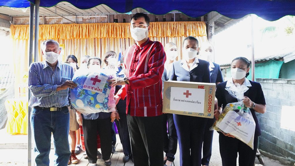 หลังจากนั้น นางจิราภรณ์ โมสิกรัตน์ นายกกาชาดจังหวัดแม่ฮ่องสอน ได้เดินทางเป็นประธานในพิธีส่งมอบบ้านให้กับนางศรีนวล พรหมมา บ้านเลขที่ 9/2 หมู่ 9 บ้านแม่กองแป ตำบลแม่ยวม อ.แม่สะเรียง จ.แม่ฮ่องสอน ตามโครงการสร้างบ้านผู้ยากไร้ ผู้ด้อยโอกาส ผู้พิการ ของเหล่ากาชาดจังหวัดแม่ฮ่องสอนประจำปีงบประมาณ พ.ศ. 2565 โดยจังหวัดแม่ฮ่องสอนได้จัดทำโครงการสร้างบ้านให้ผู้ยากไร้ จังหวัดแม่ฮ่องสอนขึ้น เพื่อลดความเหสื่อมล้ำในสังคม ให้กับประชาชนกลุ่มเป้าหมาย มีคุณภาพชีวิตครอบครัวที่ดีขึ้น เป็นผู้ยากไร้ ด้อยโอกาส ที่ขาดแคลนที่อยู่อาศัยที่มั่นคง โดยบ้านหลังเดิมมีลักษณะเป็นบ้านที่ทำจากไม้ไผ่ มุงหลังคาใบตองตึง สภาพ ผุพัง ทรุดโทรม และมีสมาชิกในครอบครัว 3 คนนางศรีนวล เป็นบุคคลที่มีความขยันขันแข็ง ทำงานทุกอย่างเพื่อหาเลี้ยงตัวเองและสมาชิกในครอบครัว ทางคณะกรรมการพิจารณาสร้างบ้านให้กับผู้ยากไร้ ผู้ด้อยโอกาสรายดังกล่าว โดยมอบหมายให้ทางอำเภอแม่สะเรียงร่วมกับ หน่วยงานราชการ ร้านค้า กำนันผู้ใหญ่บ้าน และ ประชาชนในพื้นที่ ช่วยกันดำเนินการสร้างบ้าน เป็นเงินงบประมาณ จำนวน 60,000 บาท
