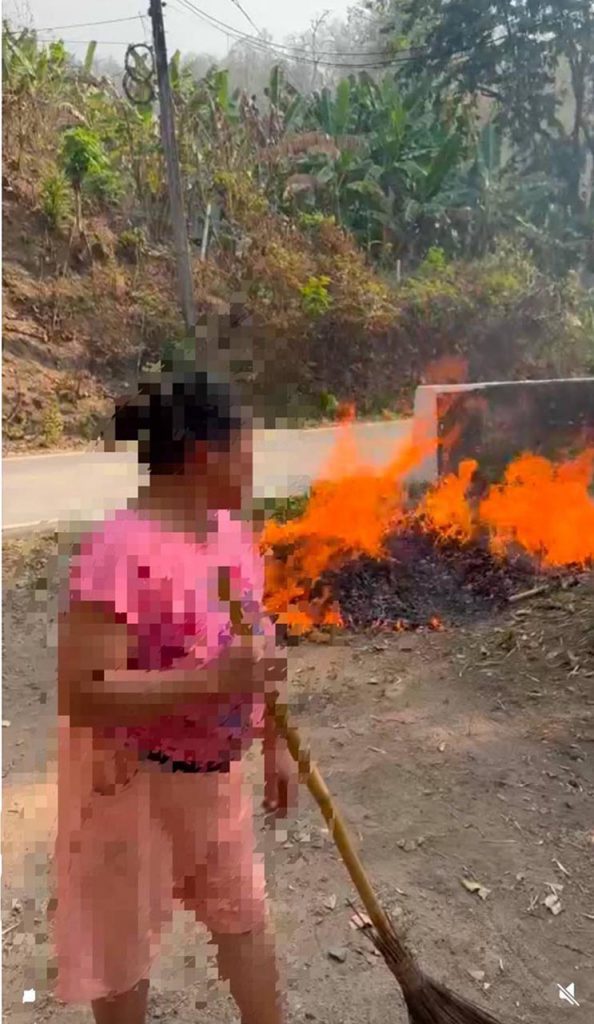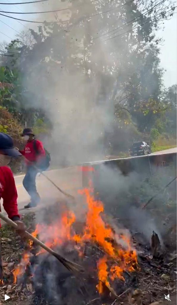 เผาหน้าริมทางหลวง108 (แม่สะเรียง -ฮอด) รถวิ่งผ่านไปมา ควันกระจายทั่ว อ้างไม่รู้ หวิดลามใหญ่ เคราะห์ดีเจ้าหน้าที่พบช่วยดับทัน พร้อมควบคุมตัวเพื่อดำเนินคดีทางกฎหมาย