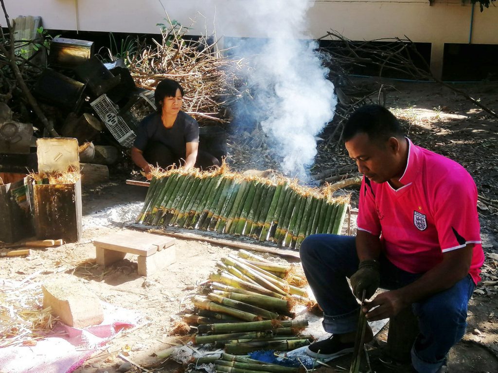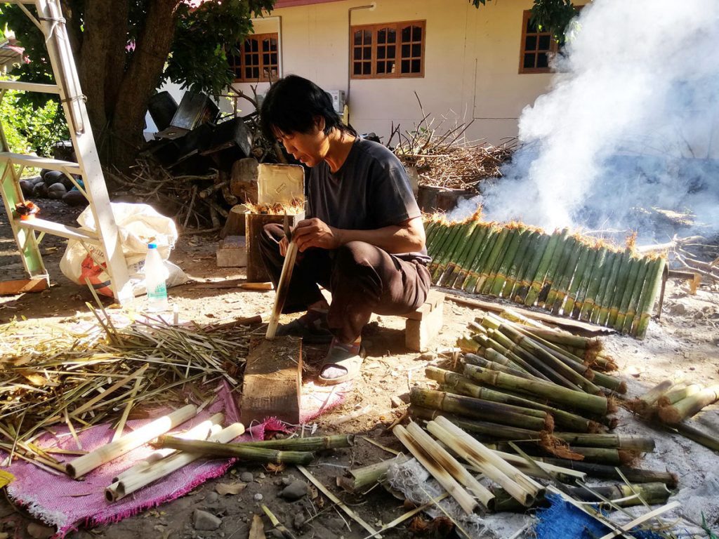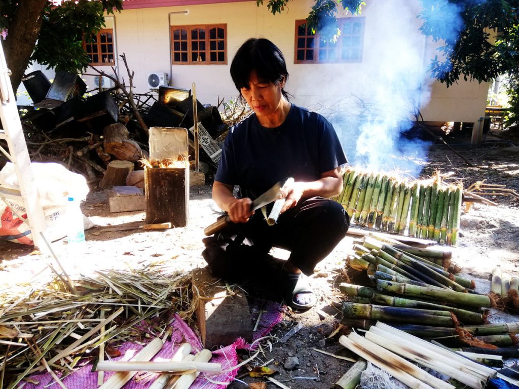 แม่สะเรียงเผาข้าวหลาม เตรียมขึ้นวัดทำบุญตานข้าวใหม่ หรือการถวายข้าวใหม่ เดือนสี่ตามประเพณี