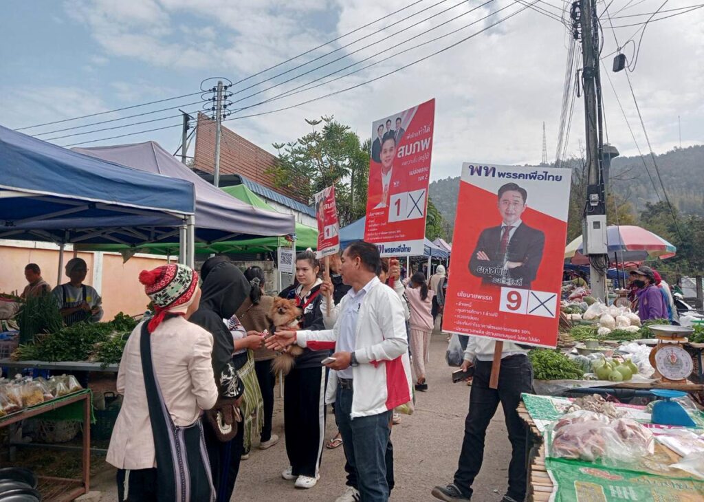 โดยในวันนี้ นายสมภพ คงความซื่อ หรือ “ครูโจ้” ผู้สมัคร สส.พรรคเพื่อไทย จังหวัดแม่ฮ่องสอน เขต 2 เบอร์ 1 ลงพื้นที่พบปะพ่อค้าแม่ค้าและพี่น้องประชาชน ณ บริเวณกาดเสาร์ ถนน 108 อ.แม่สะเรียง จ.แม่ฮ่องสอน ซึ่งเป็นตลาดนัดชุมชนคนแม่สะเรียงที่ใหญ่และมีเศรษฐกิจดีหมุนเวียนทุกๆวันเสาร์ ได้รับเสียงตอบรับอย่างอบอุ่นในฐานะลูกหลานชาวกะเหรี่ยง และอดีตข้าราชการครู ที่เข้าใจปัญหาเชิงลึก โดย ‘ครูโจ้’ ประกาศชูธงนโยบาย “สร้างความเท่าเทียมให้ทุกกลุ่มชาติพันธุ์ พร้อมมุ่งเป้าขจัดความยากจนเพื่อให้คนในพื้นที่ลืมตาอ้าปากได้อย่างมีศักดิ์ศรี โดยอาสาเป็นตัวแทนเข้าไปสะท้อนปัญหาที่ถูกละเลยมานานในสภาผู้แทนราษฎร