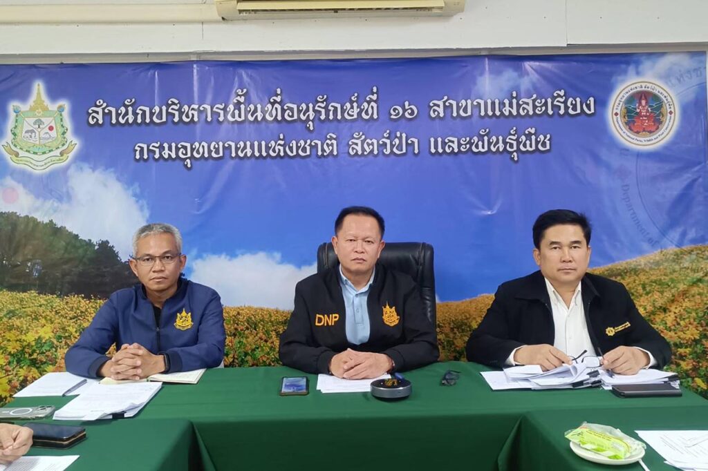 นายชัยชาญ กล่าวต่อว่า ตนซึ่งเข้ามารับตำแหน่ง ผอ.สบอ.16 สาขาแม่สะเรียง เมื่อวันที่ 14 ตุลาคม 2568 เมื่อได้รับทราบเรื่องรายละเอียดเป็นลายลักษณ์อักษรและทางโทรศัพท์โดยตรงจากผู้อำนวยการส่วนอนุรักษ์และป้องกันทรัพยากร พบว่ามีมูลความจริง จึงสั่งการให้ติดตามความคืบหน้าอย่างใกล้ชิดและกำชับให้ส่วนอนุรักษ์และป้องกันทรัพยากร สนธิกำลังร่วมกับส่วนอนุรักษ์สัตว์ป่าเข้าตรวจยึด โดยให้ดำเนินการตามกฎหมายและระเบียบที่เกี่ยวข้องอย่างเคร่งครัด และได้นำเรื่องราวรายงานให้อธิบดีกรมอุทยานแห่งชาติ สัตว์ป่า และพันธุ์พืช เพื่อโปรดทราบและพิจารณาต่อไปกระทั่งเมื่อวันที่ 2 ธันวาคม 2568 คณะเจ้าหน้าที่ส่วนอนุรักษ์สัตว์ป่าและสายตรวจปราบปรามฯ ได้ร่วมกันลงพื้นที่เขตรักษาพันธุ์สัตว์ป่าแม่ยวมฝั่งขวา อ.แม่ลาน้อย จ.แม่ฮ่องสอน เพื่อปราบปรามการกระทำผิดตามที่ได้รับแจ้งจากผู้หวังดีเพื่อหวังรางวัลสินบนนำจับ