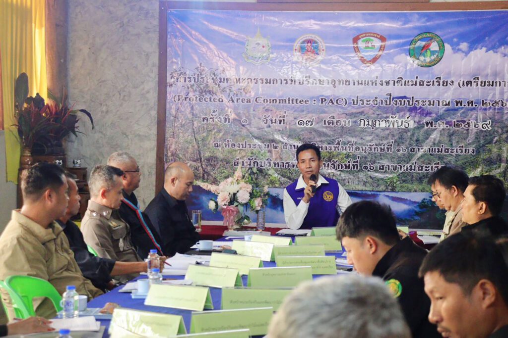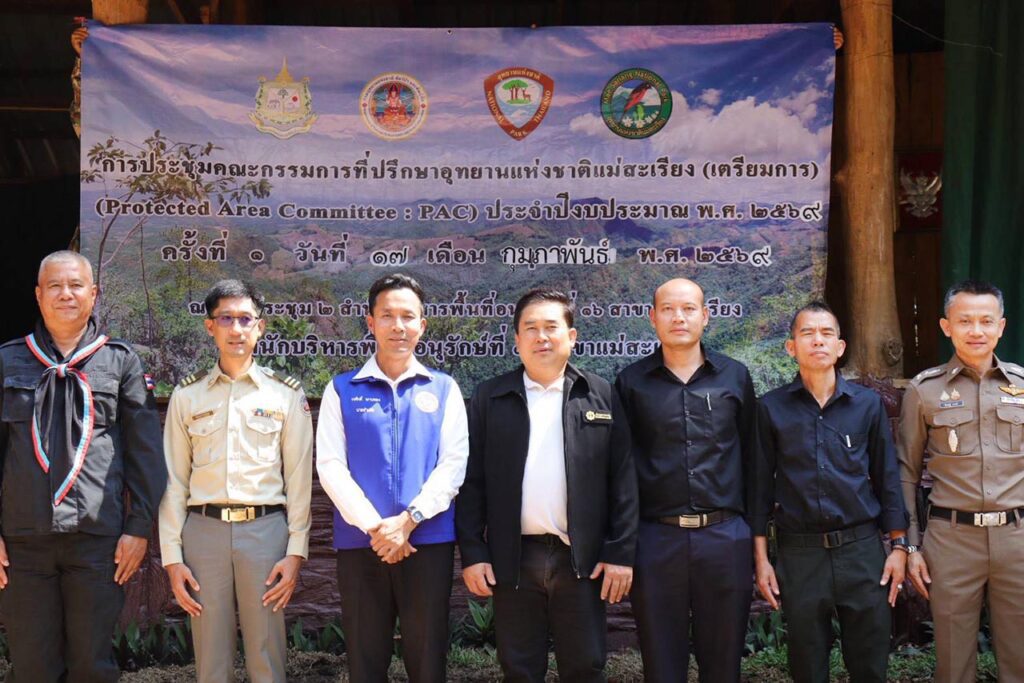 วันที่ 17 กุมภาพันธ์ 2569 ห้องประชุมที่ทำการจุดสกัดอุทยานแห่งชาติแม่สะเรียง (เตรียมการ) ตำบลบ้านกาศ อำเภอแม่สะเรียง จังหวัดแม่ฮ่องสอน นายปิยะพงษ์ ธรรมปัญญา หัวหน้าอุทยานแห่งชาติแม่สะเรียง (เตรียมการ) พร้อมคณะเจ้าหน้าที่อุทยานแห่งชาติแม่สะเรียง (เตรียมการ) และ คณะกรรมการฯ จัดการประชุมคณะกรรมการที่ปรึกษาอุทยานแห่งชาติแม่สะเรียง (เตรียมการ) (Protected Area Committee : PAC) ครั้งที่ 1 /2569 โดยมี นายวรศักดิ์ พานทอง นายอำเภอแม่สะเรียง เป็นประธาน ในการประชุมติดตามการดำเนินงานของ อช.แม่สะเรียง (เตรียมการ) ความคืบหน้าการกำหนดพื้นที่เป็นอุทยานแห่งชาติแม่สะเรียง และการเตรียมความพร้อมในด้านการป้องกันและแก้ไขปัญหาไฟป่าและหมอกควันในพื้นที่