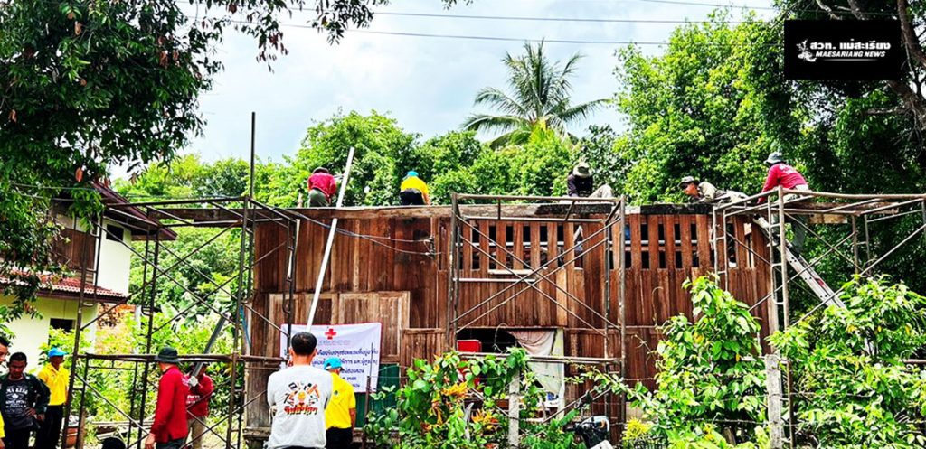 วันที่ 9 มิถุนายน 2566 นายสุรเชษฐ์ พุ้ยน้อย นายอำเภอแม่สะเรียง (นายกกิ่งกาชาดอำเภอแม่สะเรียง) พร้อมด้วยคณะกรรมการเเละสมาชิกกิ่งกาชาดอำเภอแม่สะเรียง นายกเทศมนตรีตำบลแม่สะเรียง พัฒนาการอำเภอแม่สะเรียง ท้องถิ่นอำเภอแม่สะเรียง เกษตรอำเภอแม่สะเรียง ตำรวจตระเวนชายเเดนที่ 337 สมาชิกกองอาสารักษาดินเเดนอำเภอแม่สะเรียงที่ 3 ผู้ใหญ่บ้าน ผู้ช่วยผู้ใหญ่บ้าน นักศึกษามหาลัยธรรมศาสตร์วิทยาเขตลำปาง เเละประชาชนในพื้นที่ชุมชนในเวียง ร่วมลงพื้นที่ให้กำลังใจ นางจันทรา ขันติยะ บ้านเลขที่ 335 หมู่ที่ 2 ตำบลแม่สะเรียง อำเภอแม่สะเรียง จังหวัดแม่ฮ่องสอน ในการปรับปรุงซ่อมแซมบ้าน ที่อยู่อาศัยให้มีความสะดวก ปลอดภัย และให้ประชาชนมีคุณภาพชีวิตที่ดีขึ้น