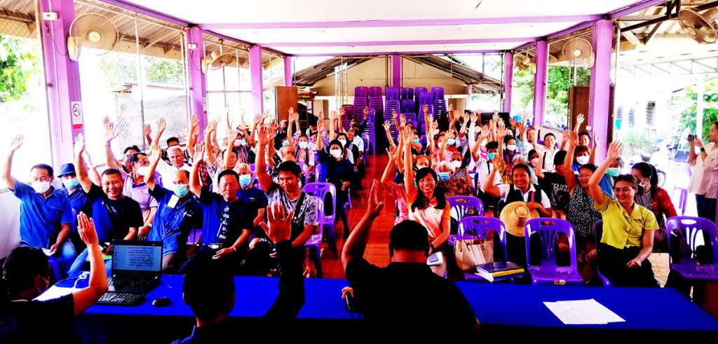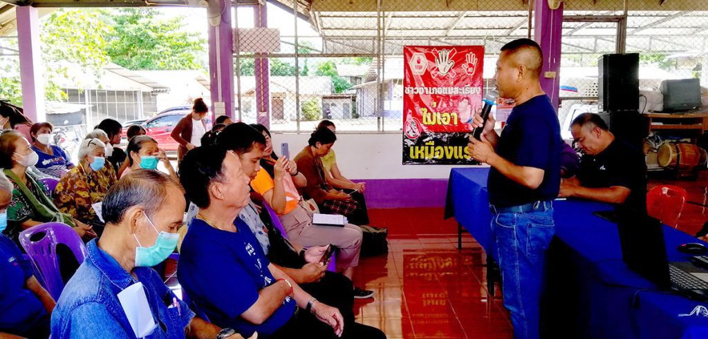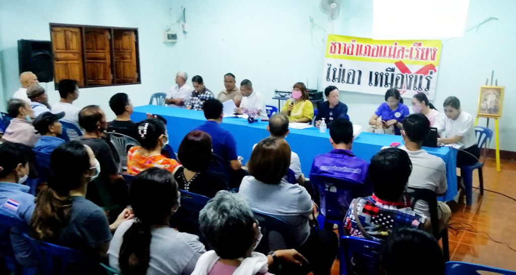 เช่นเดียวกับ ที่ศาลาประชาคมบ้านทุ่งพร้าว และศาลาประชาคมบ้านแพะ อำเภอแม่สะเรียง จังหวัดแม่ฮ่องสอน พี่น้องทั้งสองหมู่บ้านเข้าร่วมประชุมประจำเดือนมิถุนายน 2566 มีวาระที่น่าสนใจคือ การร่วมกันแสดงเจตจำนงคัดค้านการออกประทานบัตรโรงโม่หิน ของ บริษัทเชียงใหม่โรงโม่หิน จำกัด โดยมี นายอนันต์ ชิงชัย กำนันตำบลแม่สะเรียง เป็นประธานในการประชุม มี นายวิชัย กองแก้ว นายกเทศมนตรีตำบลเมืองยวมใต้ นายคำปัน คำประวัน สมาชิกสภาองค์การบริหารส่วนจังหวัดแม่ฮ่องสอน อำเภอแม่สะเรียง นายเรืองศักดิ์ ขาวสะอาด ผู้อำนวยการโรงเรียนไทยรัฐวิทยาที่ 33 (บ้านทุ่งพร้าว) และ นายทองทิพย์ แก้วใส ตัวแทนภาคประชาชน เข้าร่วมประชุม ที่ประชุมฯ จึงแสดงเจตจำนงร่วมกันยกมือคัดค้านการออกประทานบัตรโรงโม่หิน ของ บริษัทเชียงใหม่โรงโม่หิน จำกัด ประชาชนต่างตระหนักดีว่าจะเกิดผลเสียมากกว่าผลดีหากมีการทำเหมืองแร่ขึ้นมา ไม่ว่าจะเป็นเรื่องทรัพยากรป่าไม้ แหล่งน้ำ เส้นทางการคมนาคม มลภาวะทางเสียง มลภาวะทางอากาศจากฝุ่นละออง จากการระเบิดแร่และการโม่หิน ซึ่งมลภาวะครอบคลุมพื้นที่ประมาณ 20 กิโลเมตร