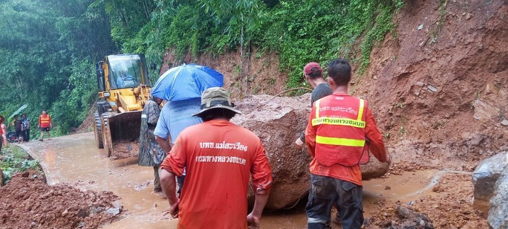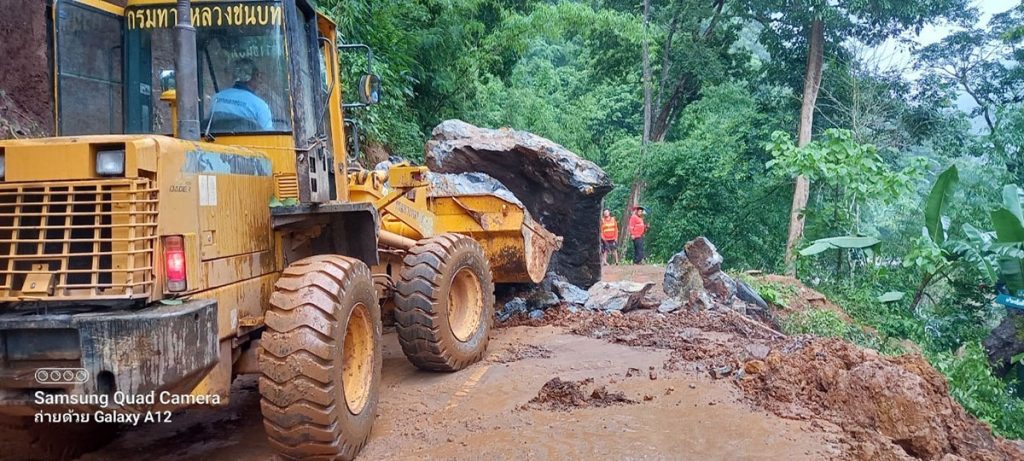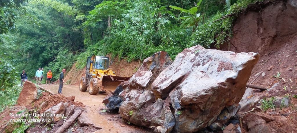 ทางหลวงฯ แม่สะเรียง ทำลายหินภูเขาน้ำหนัก 50 ตัน ปิดขวางเส้นทาง คาดวันนี้เส้นอุมโล๊ะ-สบโขง สัญจรได้