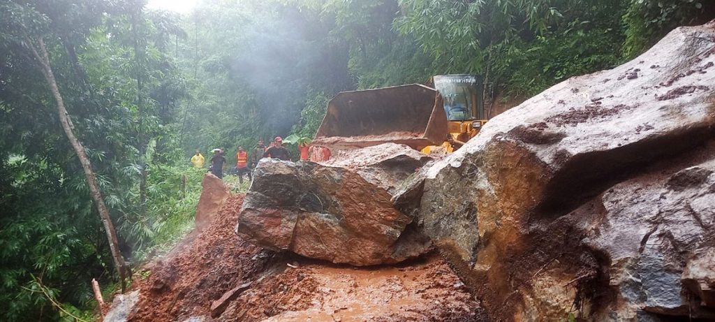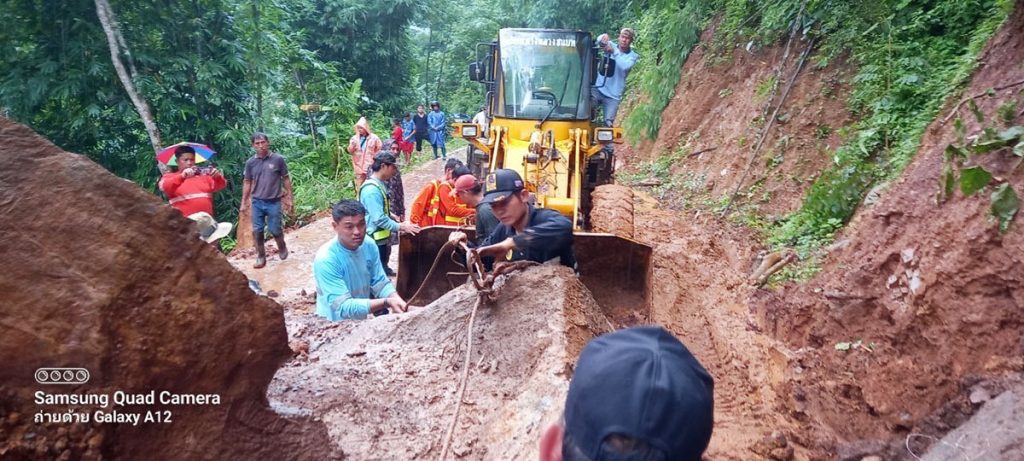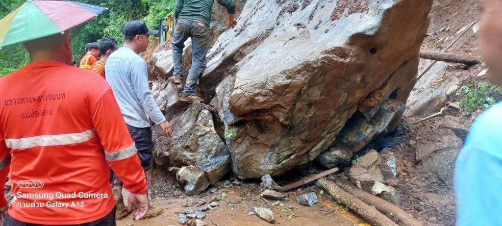 วันที่ 7 สิงหาคม 2566 นายสาธิต คันธะวงศ์ หัวหน้าหมวดบำรุงทางหลวงชนบทแม่สะเรียง ได้เปิดเผย ว่า ทางเจ้าหน้าที่ทางหลวงชนบทแม่สะเรียง พร้อม เครื่องจักรได้เข้าทำลายหินภูเขาขนาดใหญ่น้ำหนัก 50 ตัน ที่ปิดขวางเส้นทางระหว่างบ้านอุมโล๊ะ – บ้านสบโขง ต.แม่สวด อ.สบเมย จ.แม่ฮ่องสอน ตั้งแต่วันที่ 3 สิงหาคม ที่ผ่าน จนถึงขณะสามาถทำลายหินแตกออกได้แล้ว เมื่อวานเย็น โดยหินขนาด 50 ตัน ได้แตกออกเป็น 3 ก้อน เจ้าหน้าที่สามารถ ดันออกได้ 2 ก้อน แล้ว ซึ่งคาดว่าภายในวันนี้จะสามารถดันก้อนหินภูเขา ที่เหลือเพื่อเปิดเส้นทางได้