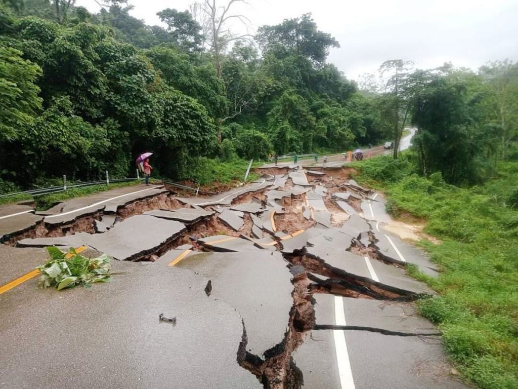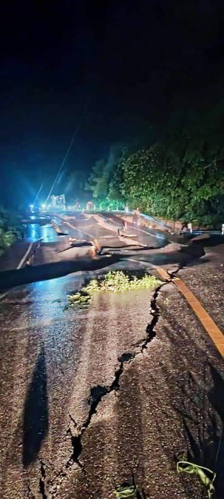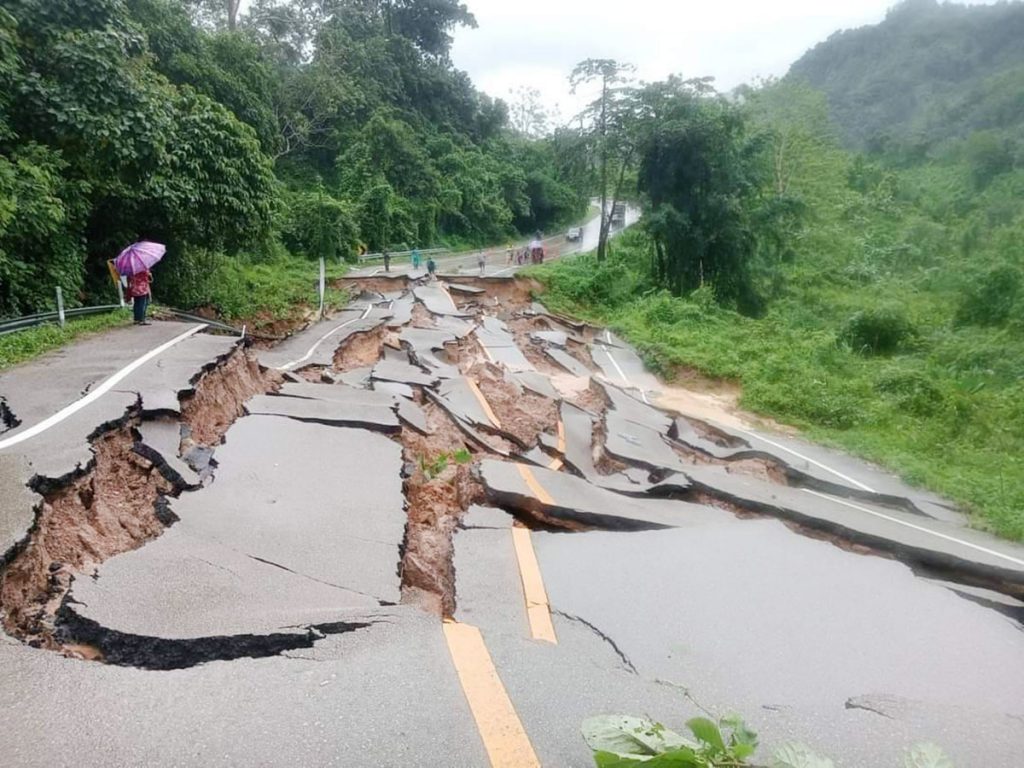ต้องปิดถนนเร่งด่วน ถนนหลวง 105 ทรุดตัว แม่สะเรียง – ท่าสองยาง สัญจรไม่ได้
