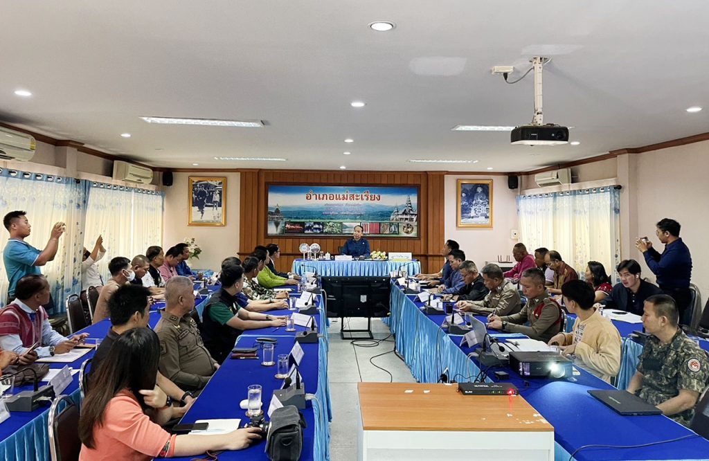 นายวรศักด์ พานทอง นายอำเภอแม่สะเรียง ได้รายงานสถานการณ์ไฟป่า หมอกควัน และฝุ่นละออง ในพื้นที่อำเภอแม่สะเรียง ในปี 2566 ที่ผ่านมา อำเภอแม่สะเรียง มีจุดความร้อนจำนวน 3,030 จุด ในปี 2567 จุดความร้อนสะสมตั้งแต่วันที่ 1 มกราคม – 24 เมษายน 2567 อำเภอแม่สะเรียงมีจุดความร้อนสะสมสูงสุด จำนวน 3,574 จุด ซึ่งที่ผ่านมา อำเภอแม่สะเรียงได้ดำเนินการตามมาตรการ 8 ด้าน เพื่อขับเคลื่อนการจัดการแก้ไขปัญหาไฟป่า หมอกควันและฝุ่นละออง ของจังหวัดแม่ฮ่องสอน การเกิดไฟป่าส่วนใหญ่เกิดในพื้นที่ป่าเขาสูงชัน แนวชายแดนไทย เมียนมา การดับไฟของเจ้าหน้าที่เป็นไปด้วยความยากลำบาก และมีความเสี่ยงในการปฏิบัติงาน