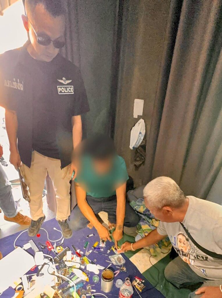 จากการตรวจค้น จุดแรกพบของกลางวางอยู่บนพื้นบริเวณห้องในห้องเล่น ยาเสพติดให้โทษประเภท 1 ยาบ้าเม็ดสีส้ม ประทับตรา wy ด้านเดียวจำนวน 40 เม็ด และสีเขียวประทับตรา wy จำนวน 2 เม็ดรวม 42 เม็ดในถุงซิปใสแบบกดปิดเลื่อนเปิด จุดที่ 2 พบยาเสพติดให้โทษประเภท 1 ยาบ้าเม็ดสีส้มประทับตรา wy จำนวน 81 เม็ด และยาเสพติดให้โทษประเภท 1 ยาบ้าเม็ดสีเขียวประทับตรา wy ด้านเดียวจำนวน 2 เม็ดรวม 83 เม็ดวางอยู่ในกล่องกระดาษโต๊ะชั้นวางของหน้าบ้าน รวมยาเสพติดที่ตรวจยึดได้ จำนวน 125 เม็ด