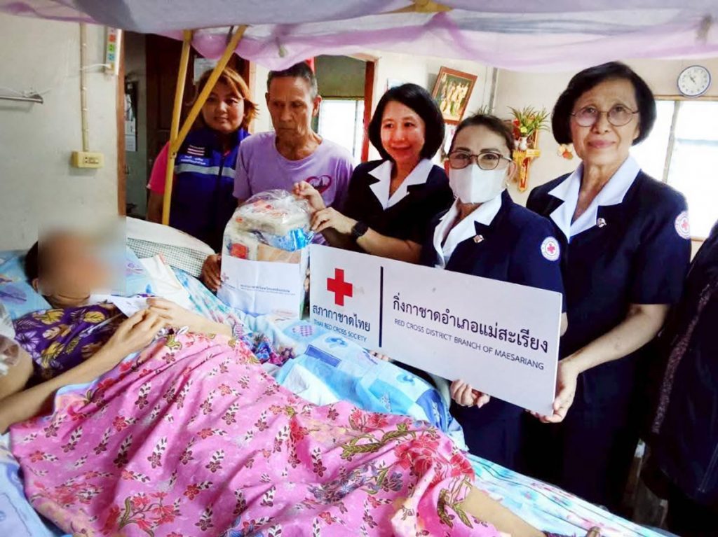 กิ่งกาชาดอำเภอแม่สะเรียงตรวจเยี่ยมและเสริมสร้างขวัญกำลังใจคนไข้ในพระบรมราชานุเคราะห์ฯ และ ผู้ป่วยติดเตียง