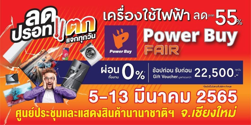 2. งาน Power Buy Fair ซึ่งเป็นการร่วมมือกับพันธมิตรยักษ์ใหญ่จาก บริษัท เพาเวอร์บาย จำกัด ซึ่งนำสินค้าประมาณ 13 แบรนด์ชั้นนำได้แก่ LG, SAMSUNG, HITACHI, SONY, MITSUBISHI, PANASONIC, ELECTROLUX, HISENSE, HAIER, TCL, DAKIN, ACONATIC, STEBEL CLEARANCE มาร่วมจัดงาน นอกจากนี้ยังได้จัดโปรโมชั่นผ่อน 0%, มอบบัตรของขวัญ มูลค่าสูงสุด 22,500 บาท, เครื่องใช้ไฟฟ้าที่นำมาจัดมอบลดสูงสุด 55% ภายใต้คอนเซ็ปต์ “ลดปรอทแตก แจกทุกวัน” และพิเศษสุดเป็นครั้งแรกที่นำโซนคอมพิวเตอร์ และอุปกรณ์อิเล็กทรอนิกส์ต่างๆ มือถือ ไปเปิดตลาดครั้งแรกในโซนดังกล่าวด้วย